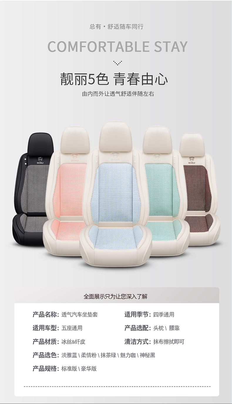 Cojín para Asiento de Coche Seda de Hielo Transpirable Unisex Invierno Nuevo Almohadilla Refrescante Simple Universal para Todas las Estaciones Elegante Diosa Funda de Asiento de Cobertura Completa