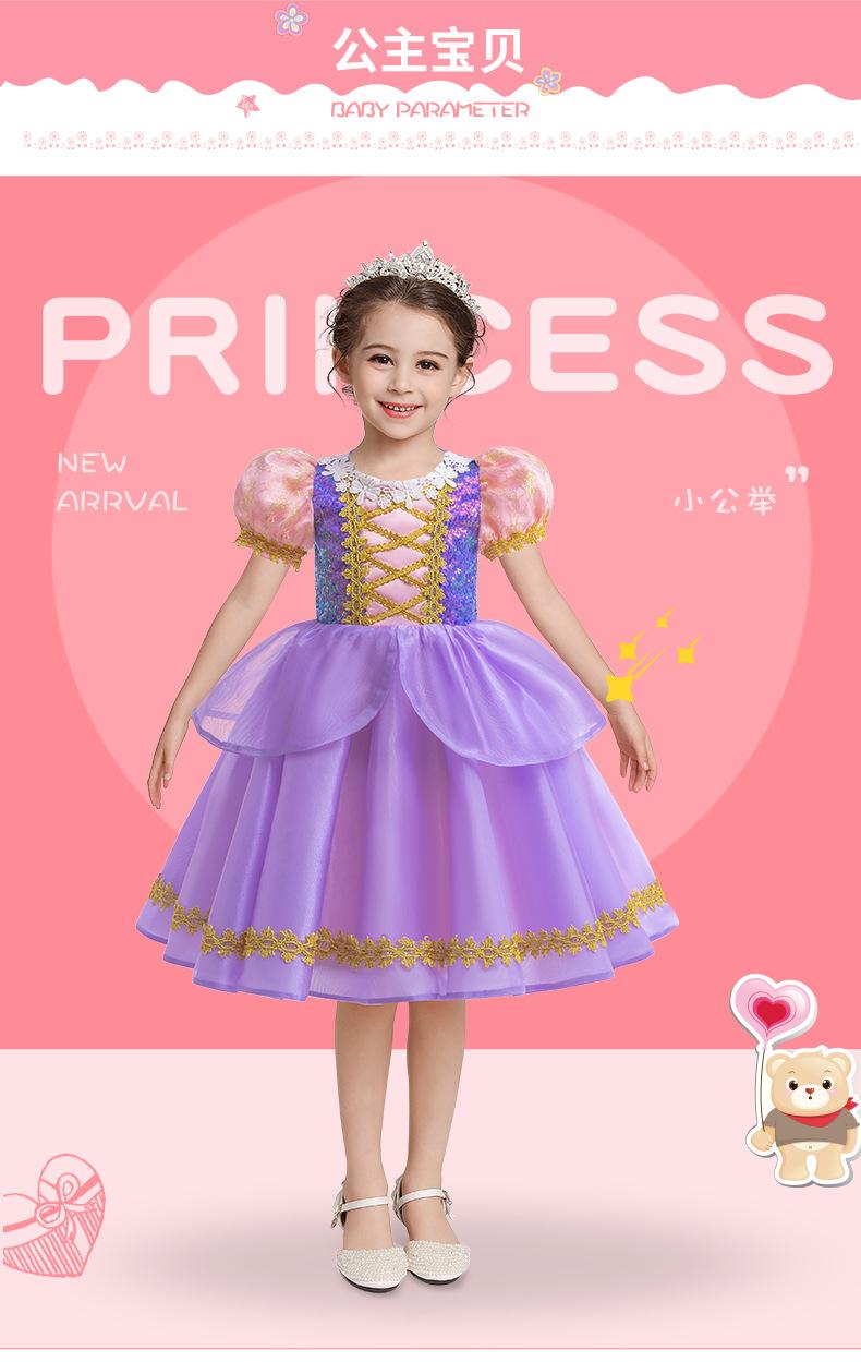 Comercio exterior nuevo vestido de niña cosplay vestido de princesa de pelo largo vestido de presentación de manga abullonada para niña