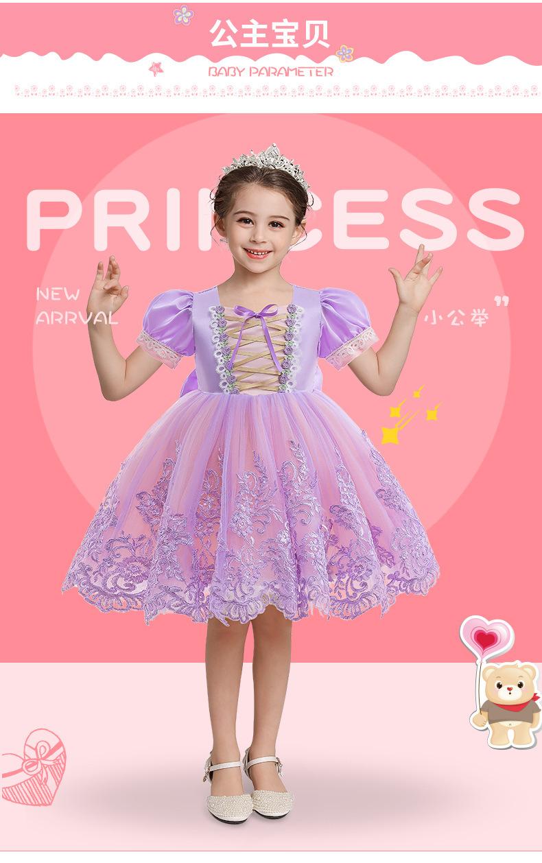 Comercio Exterior Vestido de Rapunzel para Niñas Vestido de Encaje de Malla Costuras Vestido para Niños