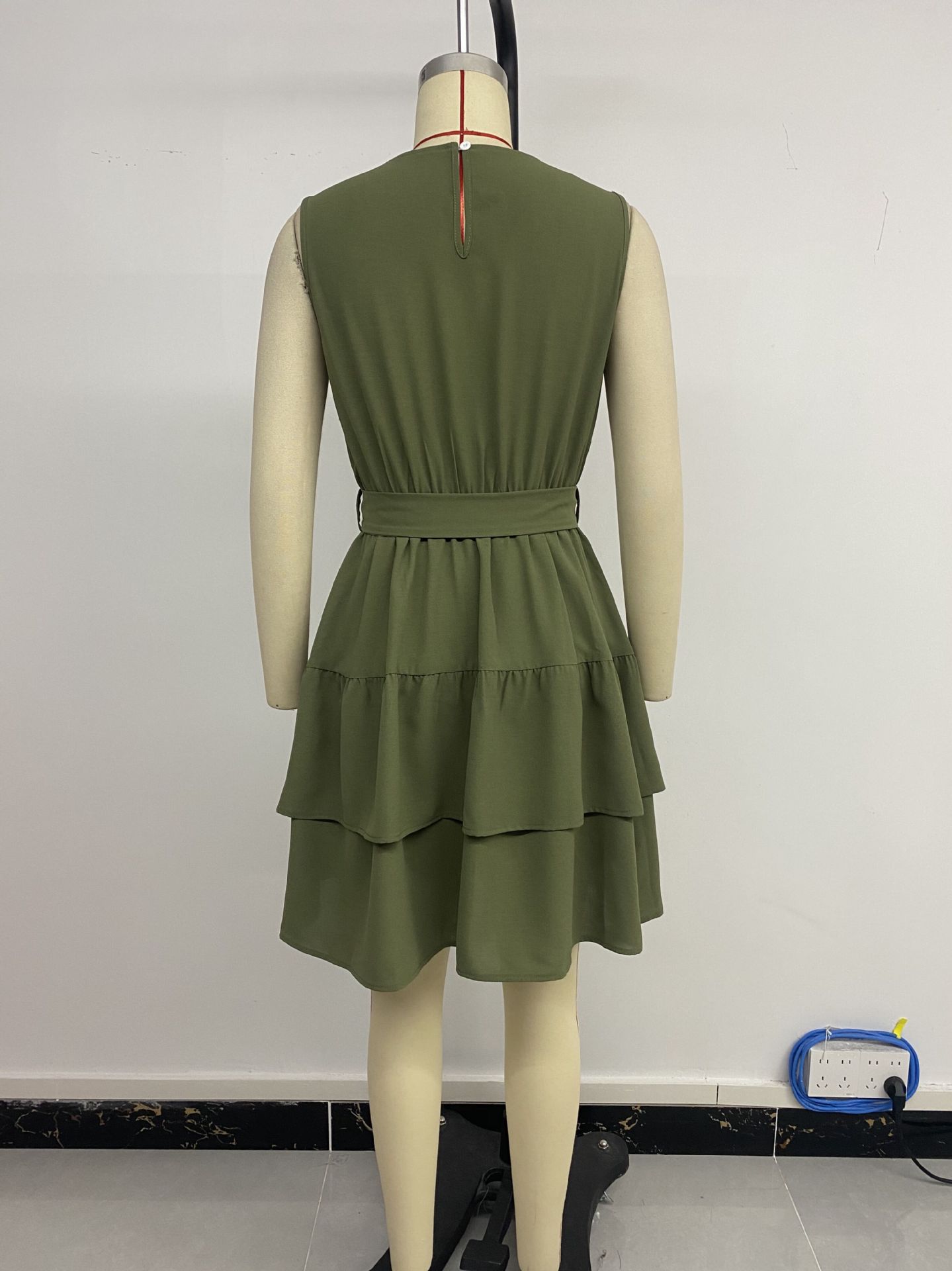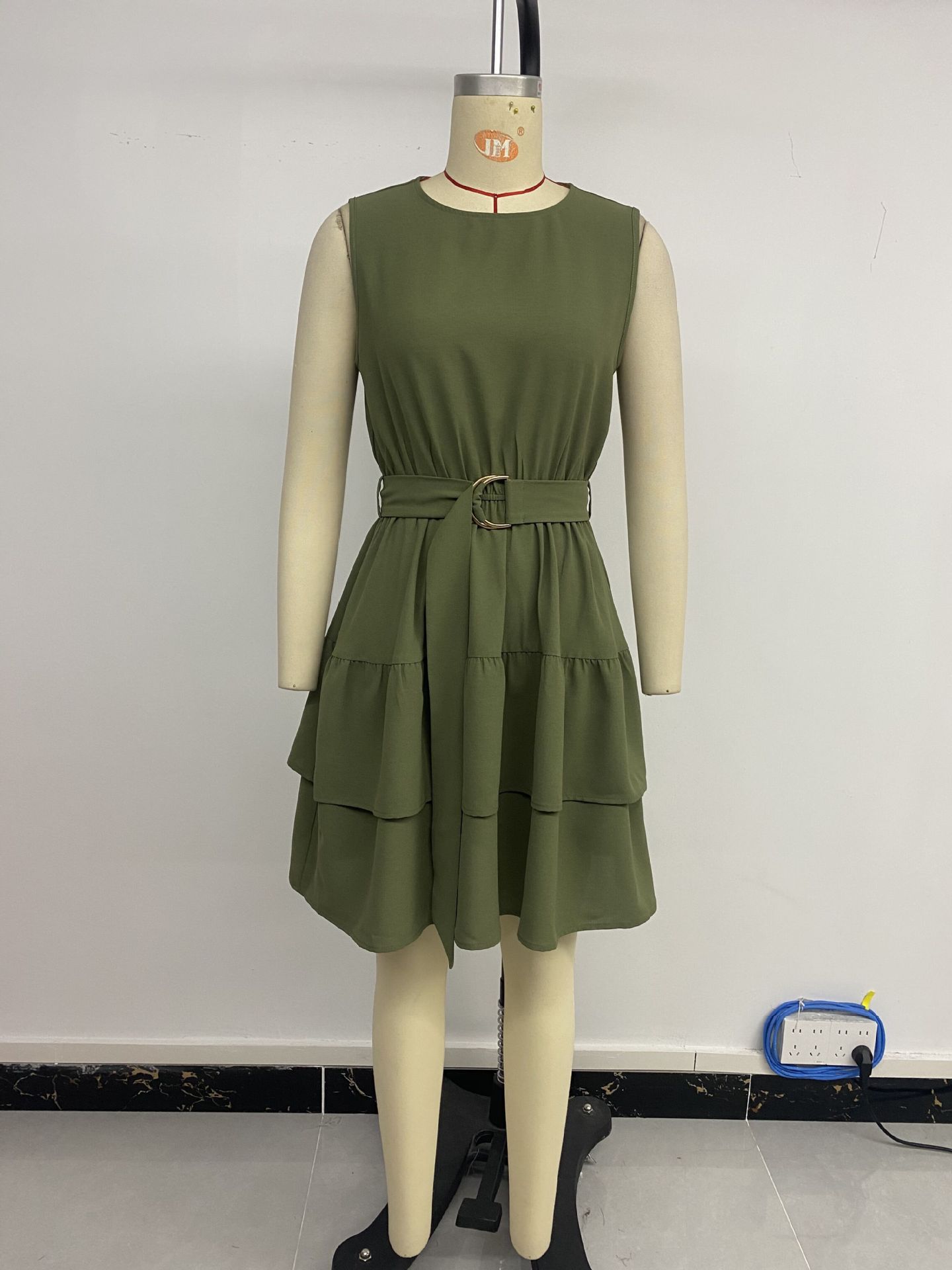 Vestido de cuello redondo sin mangas, laminado, de color sólido, con diseño transfronterizo, para mujer de Amazon Independent Station 2024, nuevo, de verano europeo y americano