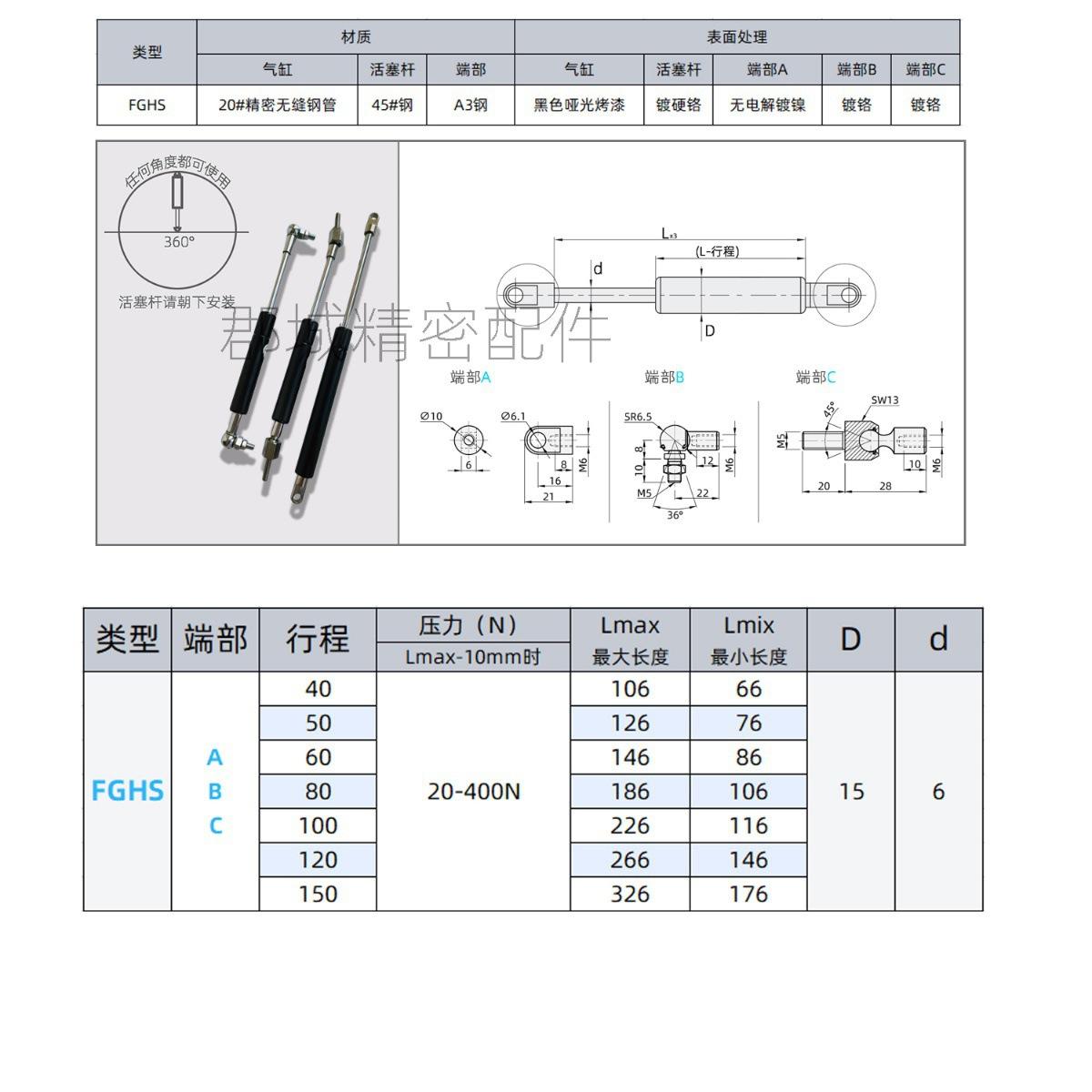 Fhl56-C-40/50/60/80/100/120/150 Soporte de Resorte de Gas Nitrógeno