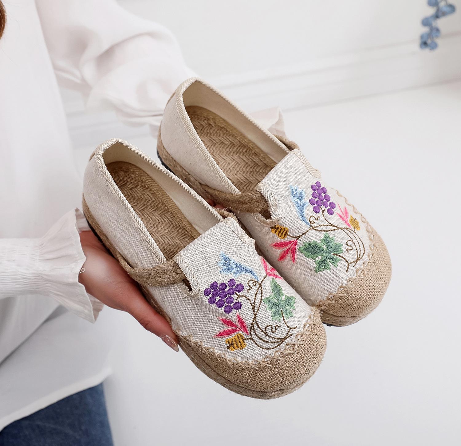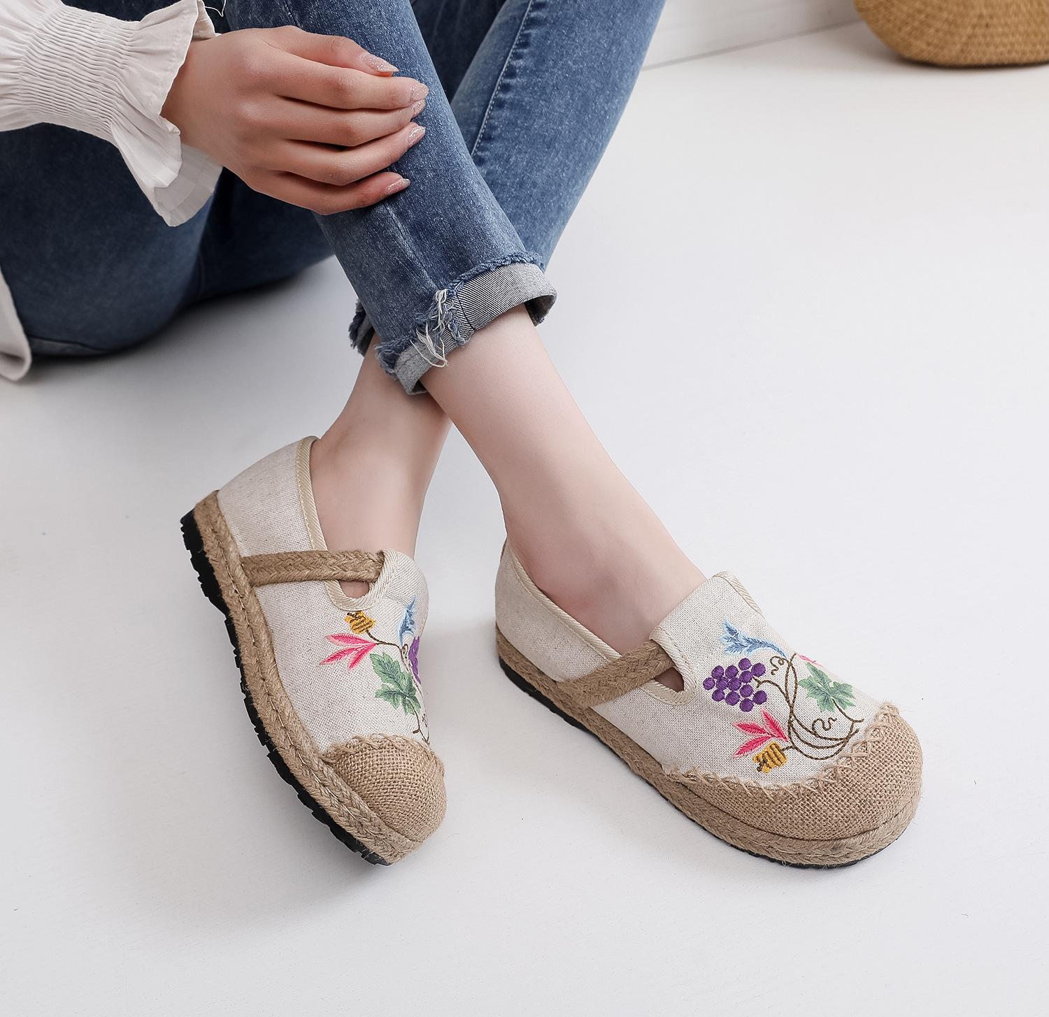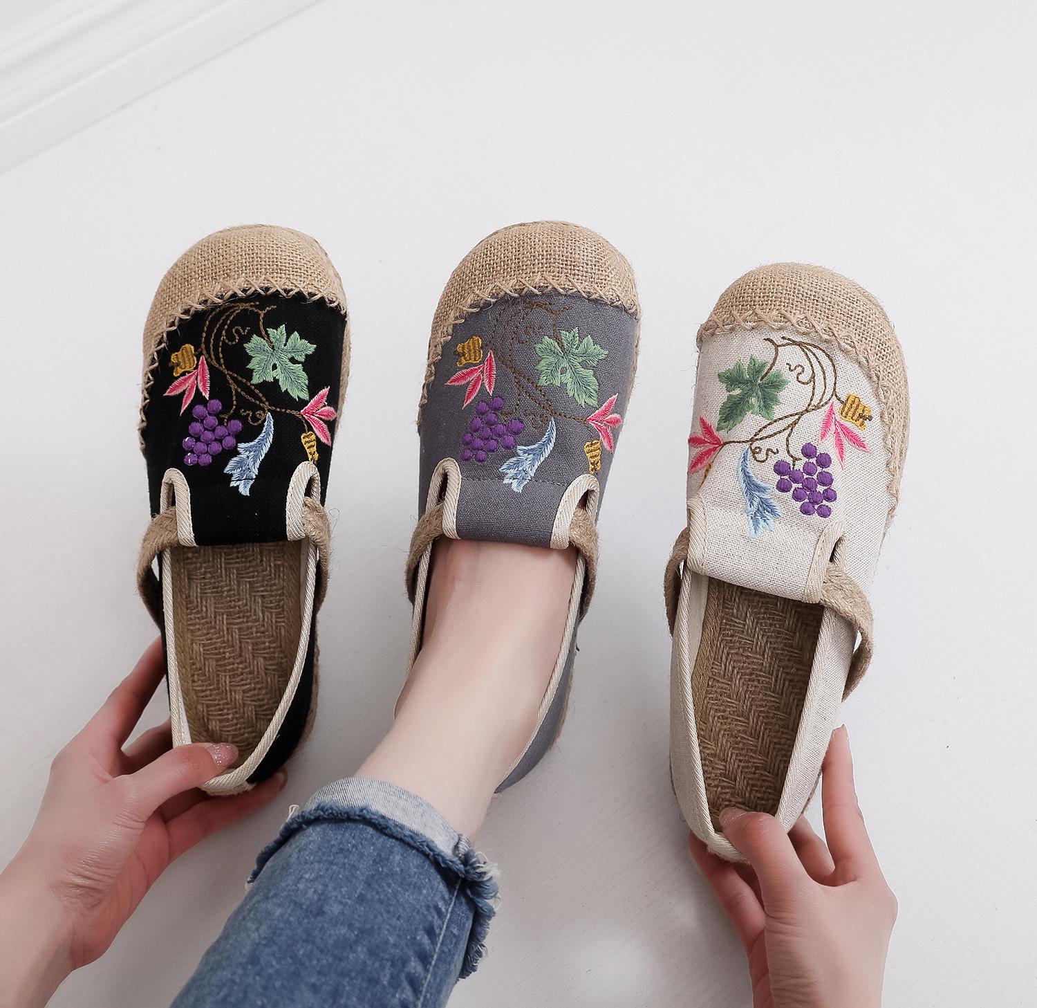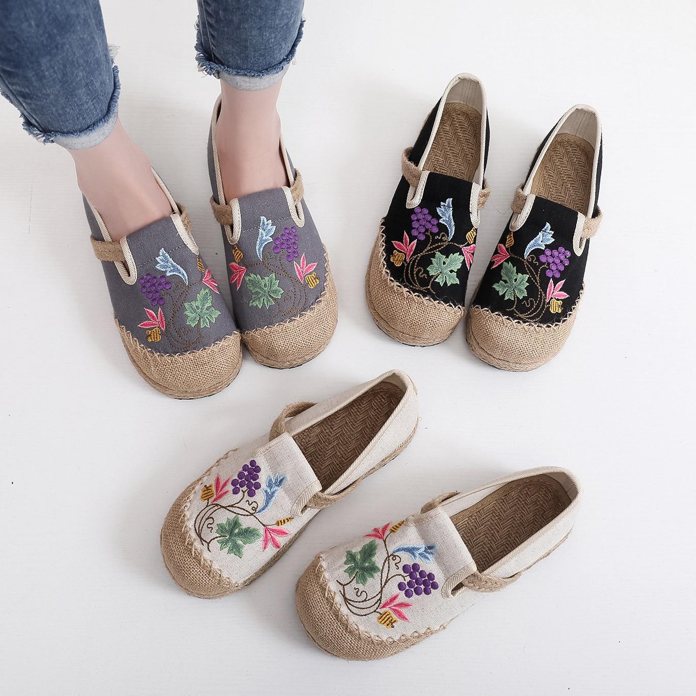 Compra Zapatos de tela bordados de estilo étnico para mujer, hechos a mano, de lino y suela suave, primavera y otoño de 2025 al por mayor en Joom.pro