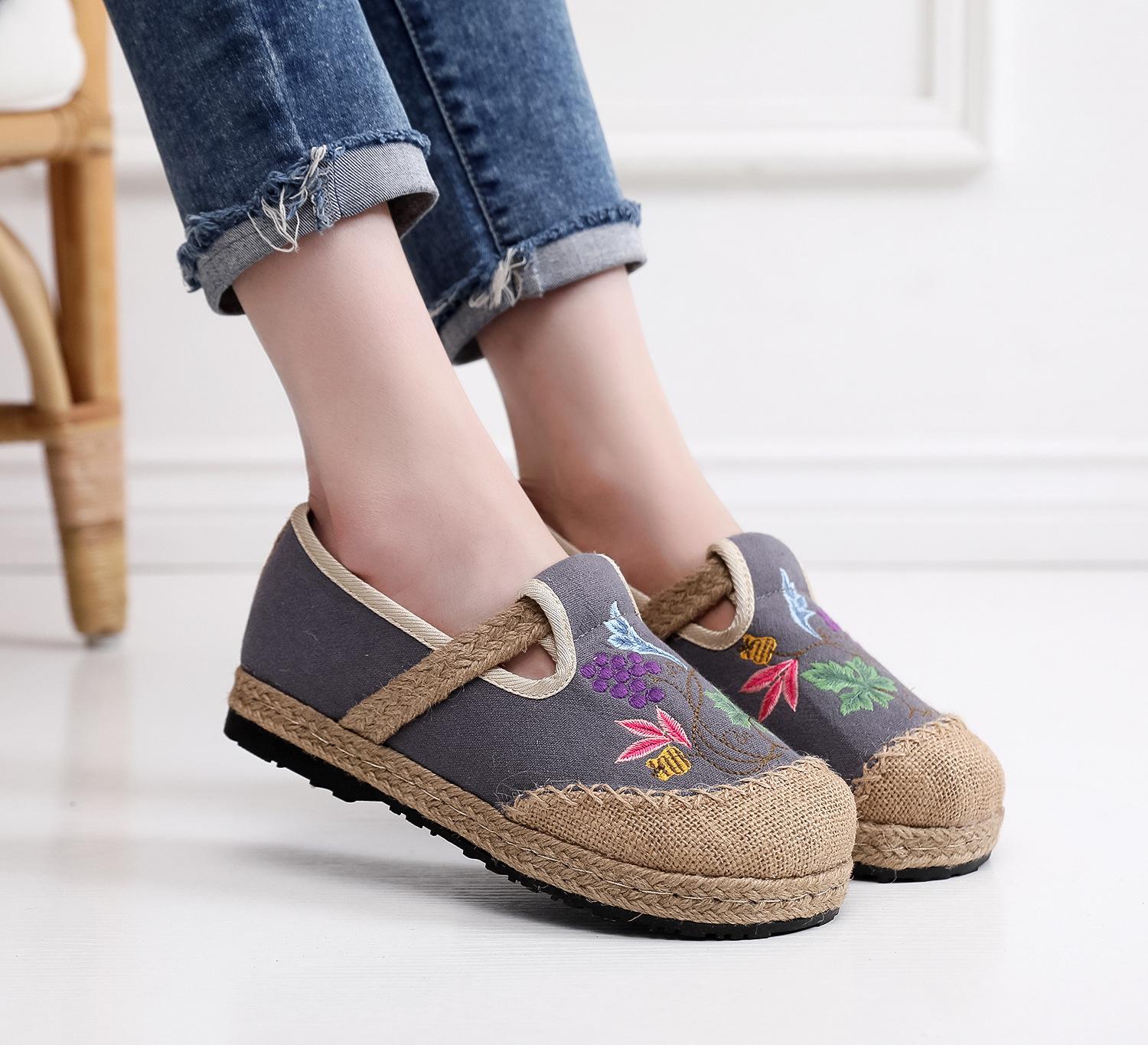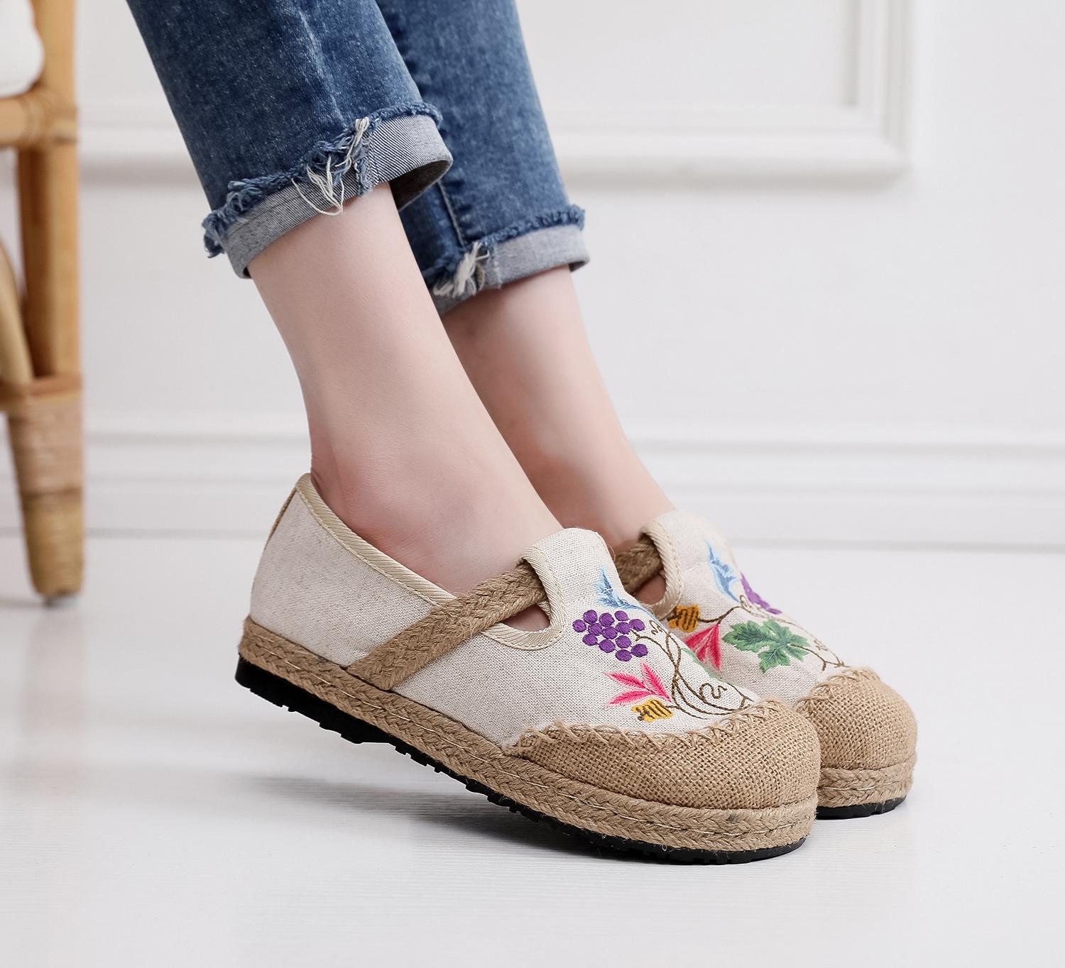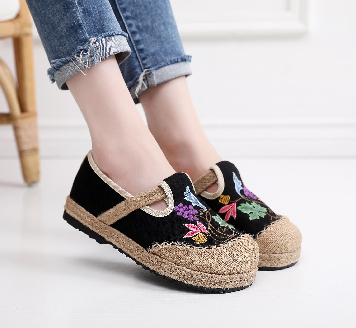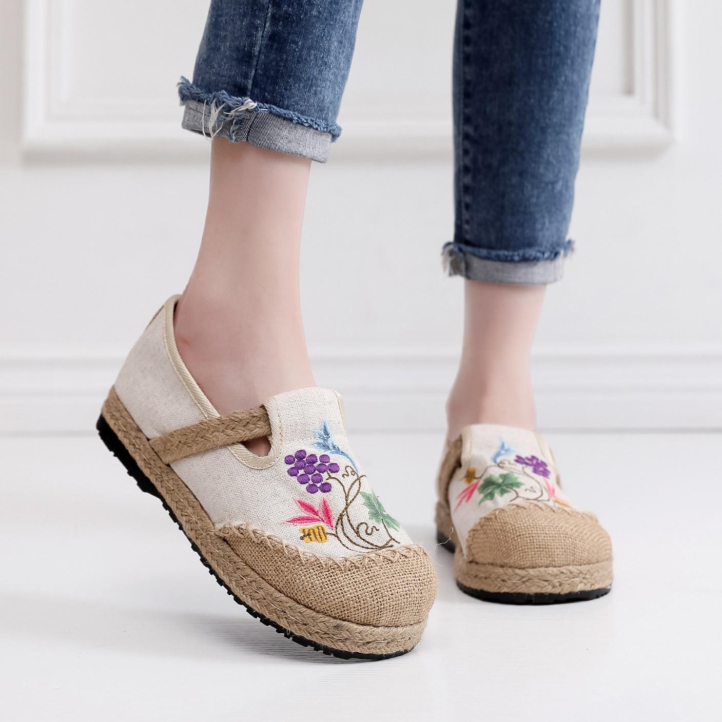 Compra Zapatos de tela bordados de estilo étnico para mujer, hechos a mano, de lino y suela suave, primavera y otoño de 2025 al por mayor en Joom.pro