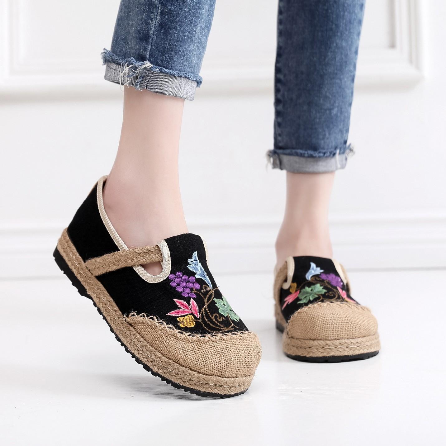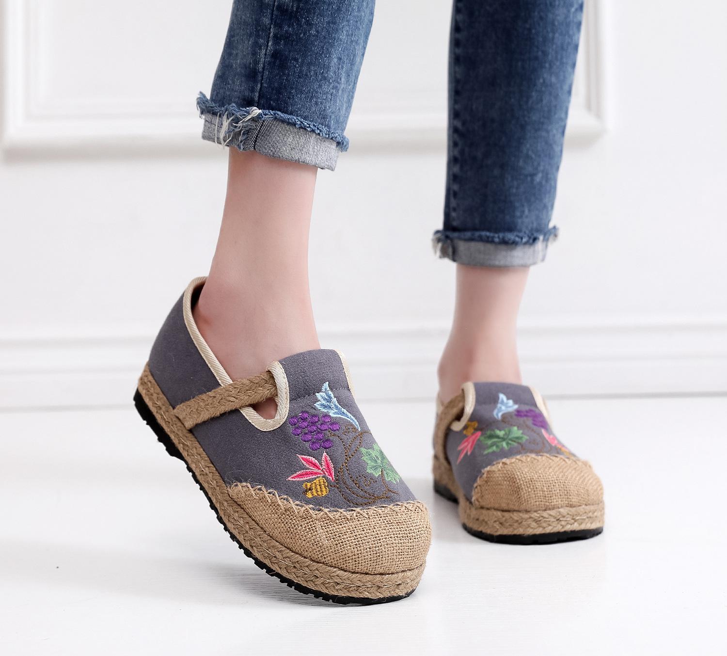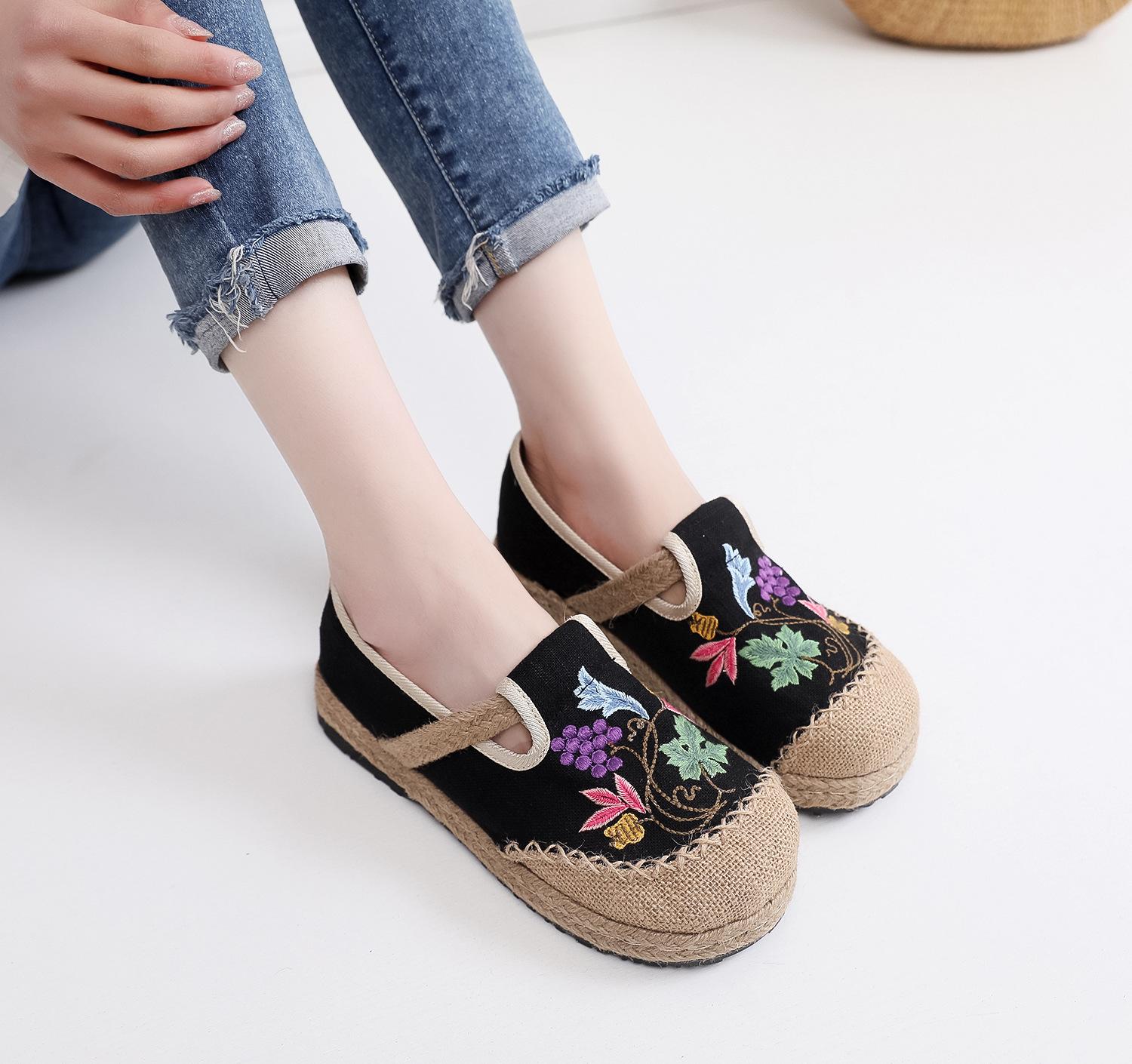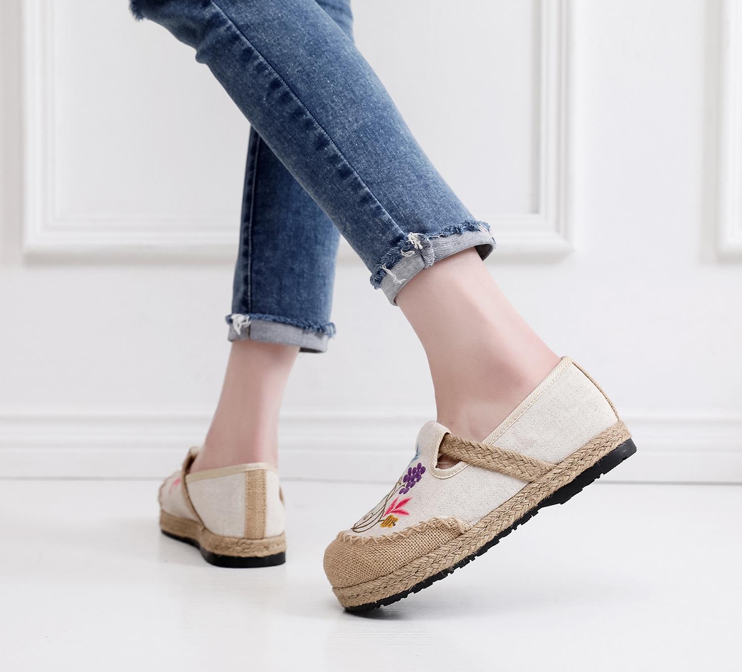 Compra Zapatos de tela bordados de estilo étnico para mujer, hechos a mano, de lino y suela suave, primavera y otoño de 2025 al por mayor en Joom.pro