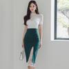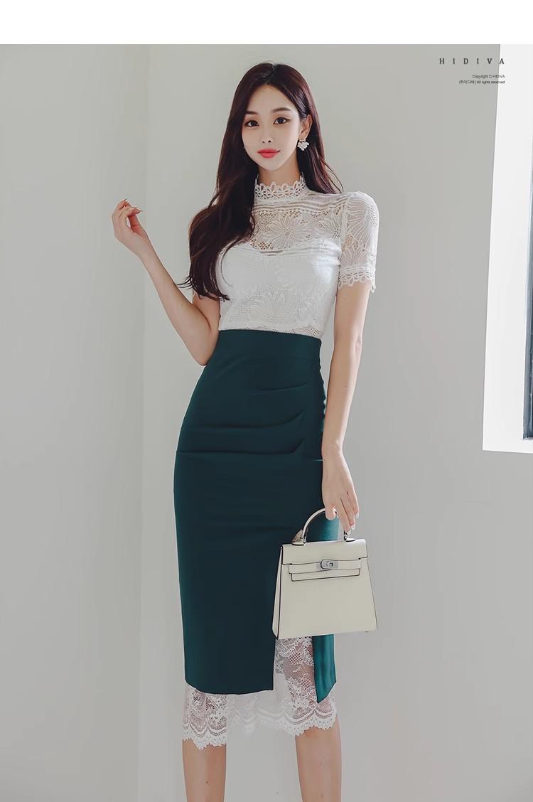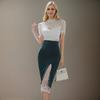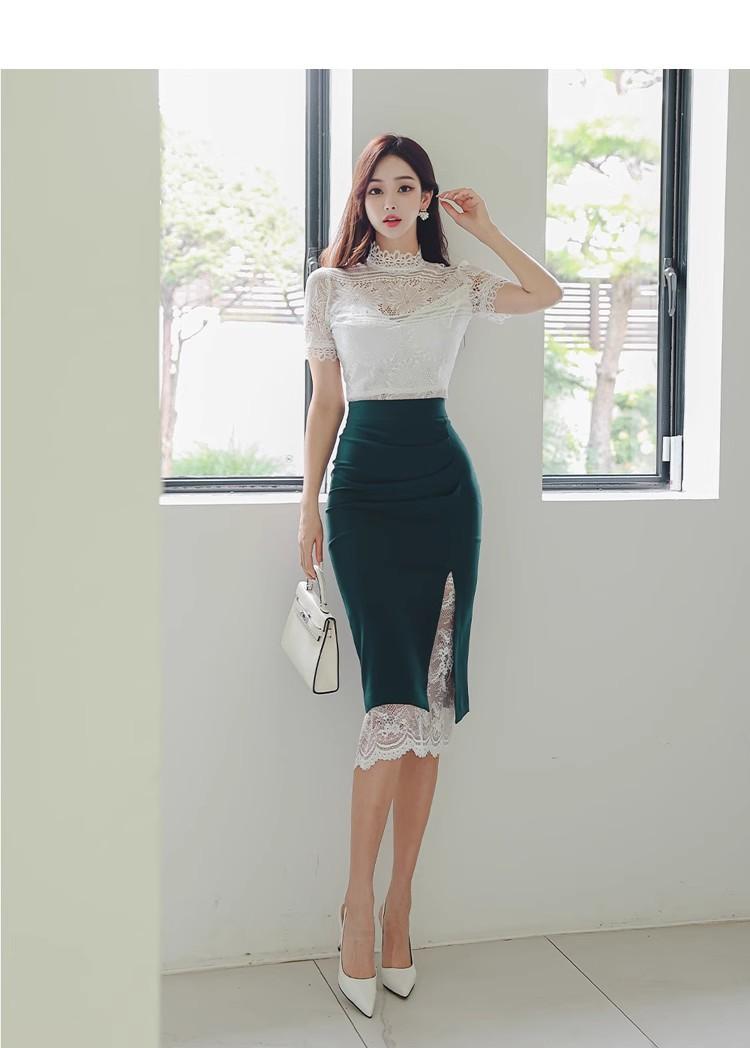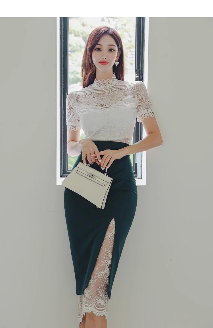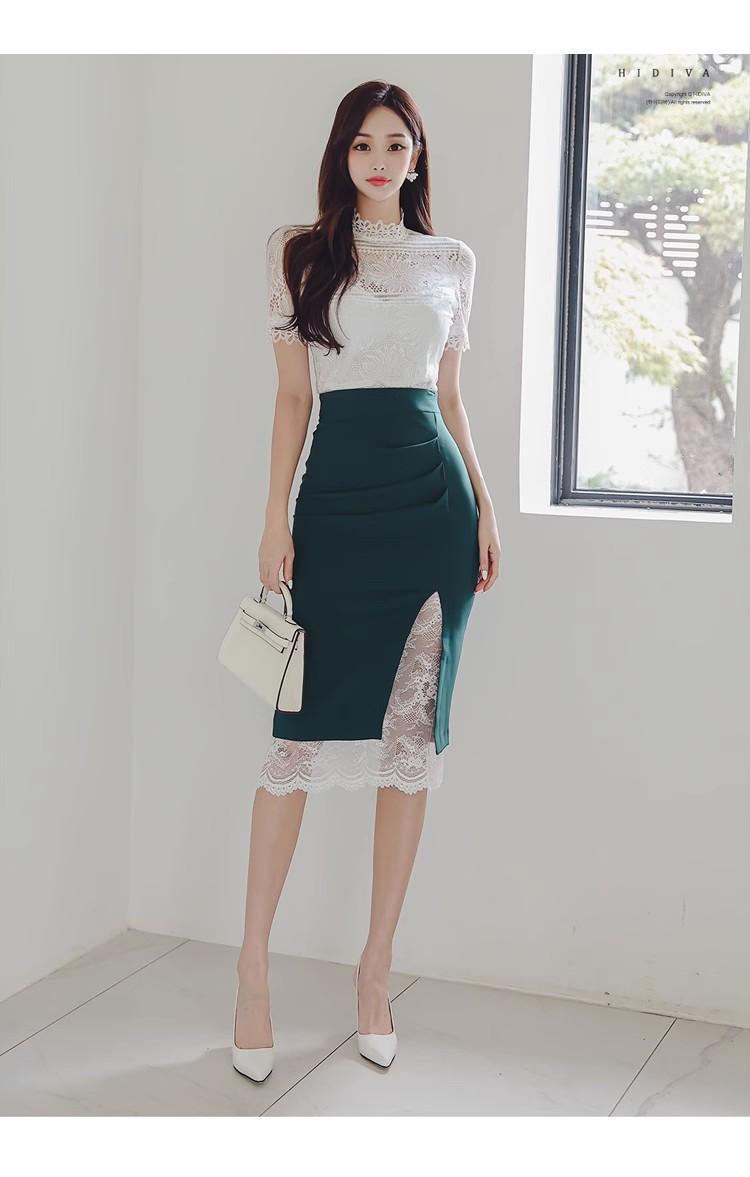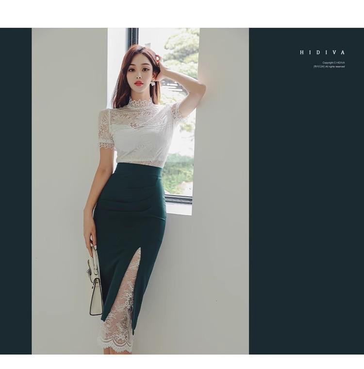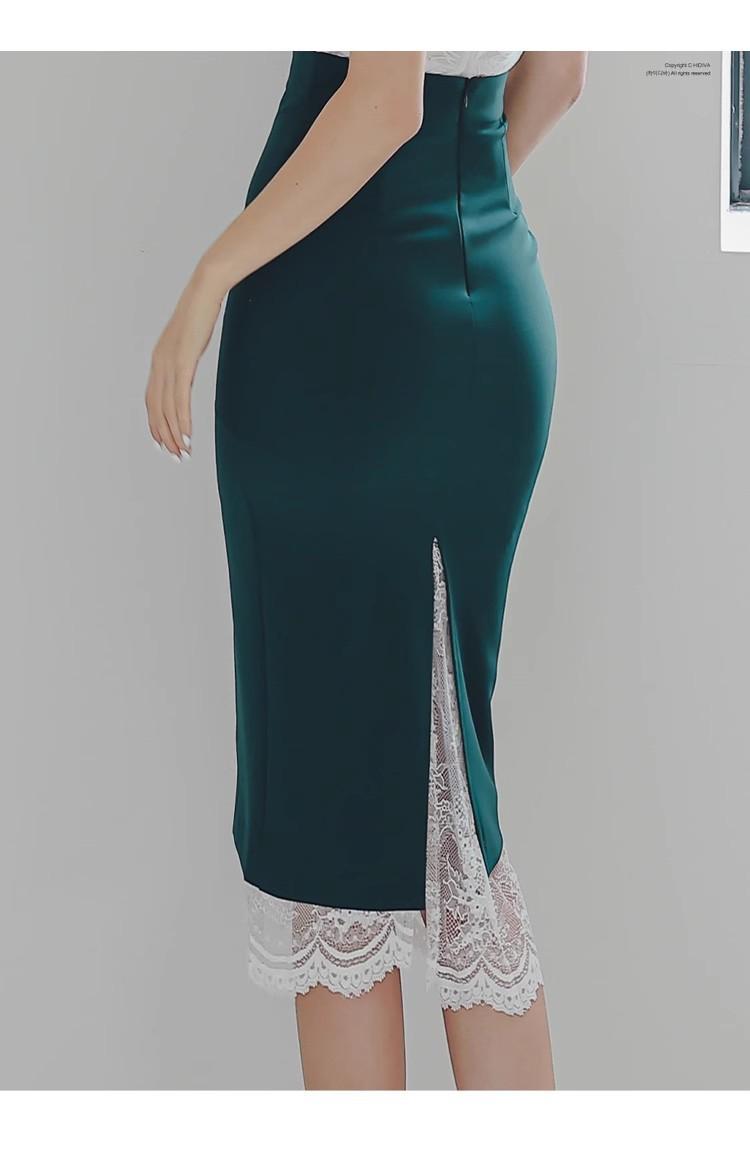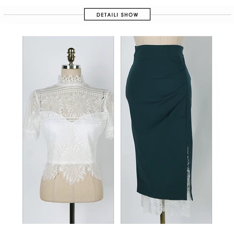 Conjunto de dos piezas transfronterizo Nuevo Verano 2025 Ajustado Elegante Top de Encaje Moda Costuras Encaje Falda de Cadera traje