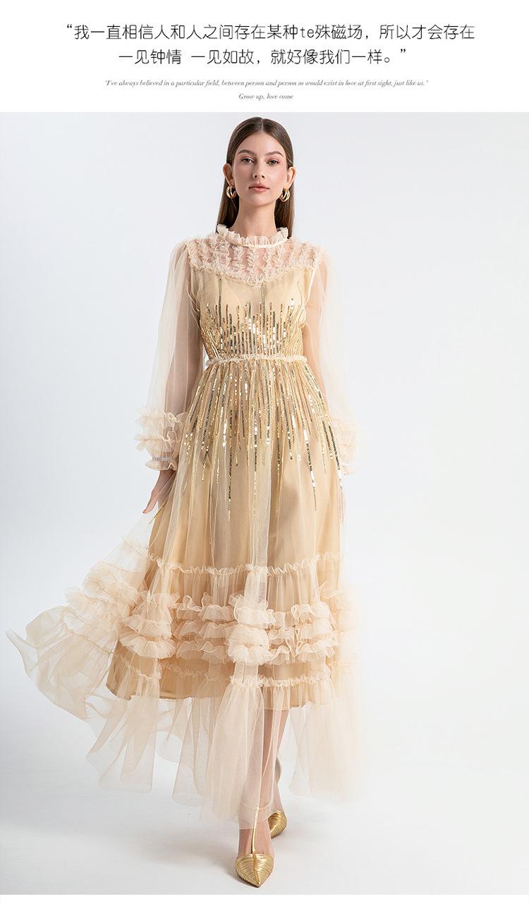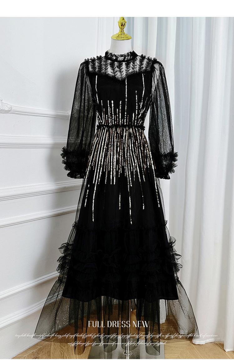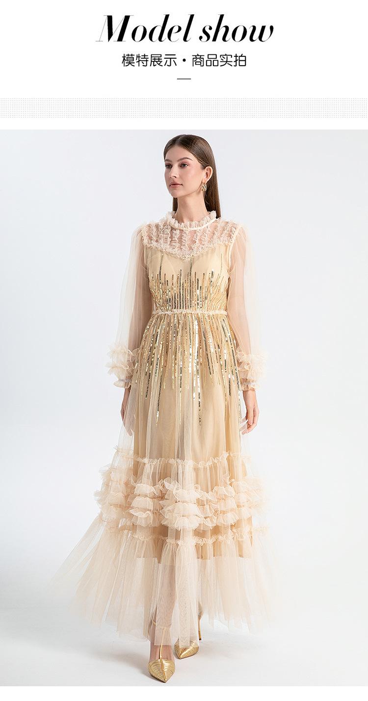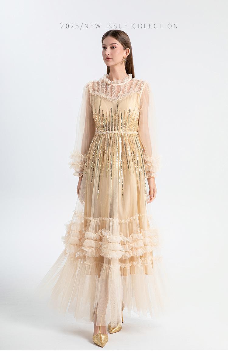 Primavera y Verano 2025 Boutique Industria Pesada Bordado Lentejuelas Malla Costuras Vestido Elegante vestido