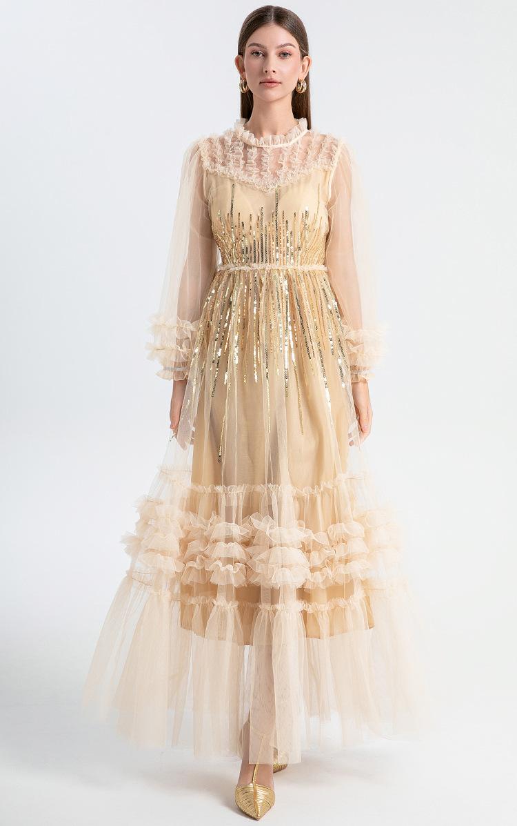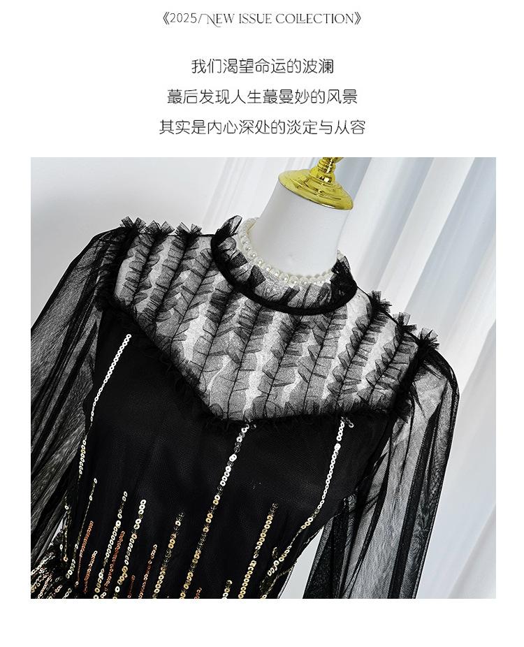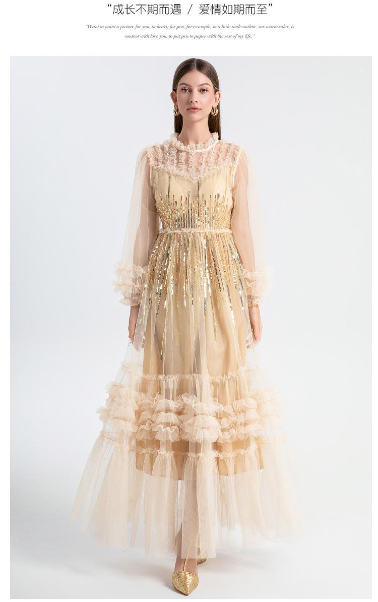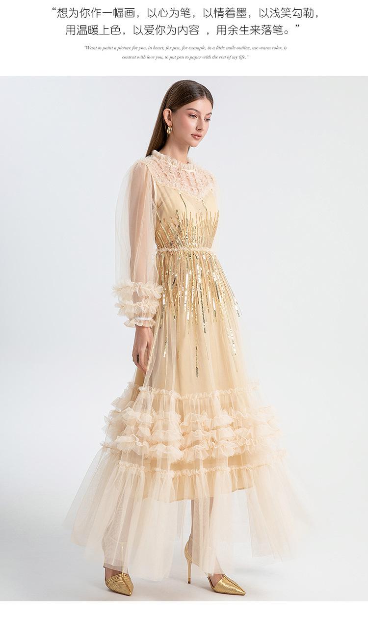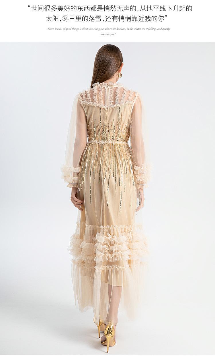 Primavera y Verano 2025 Boutique Industria Pesada Bordado Lentejuelas Malla Costuras Vestido Elegante vestido