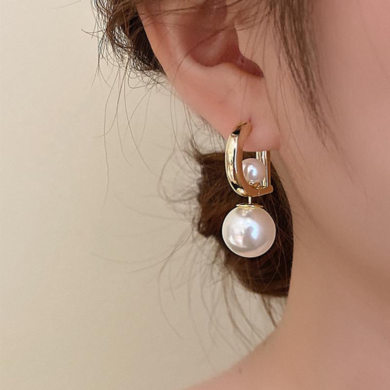 Pendientes de perla con la letra D avanzada francesa para mujer 2023, nuevos pendientes de viento de metal de marea, pendientes de moda sencillos