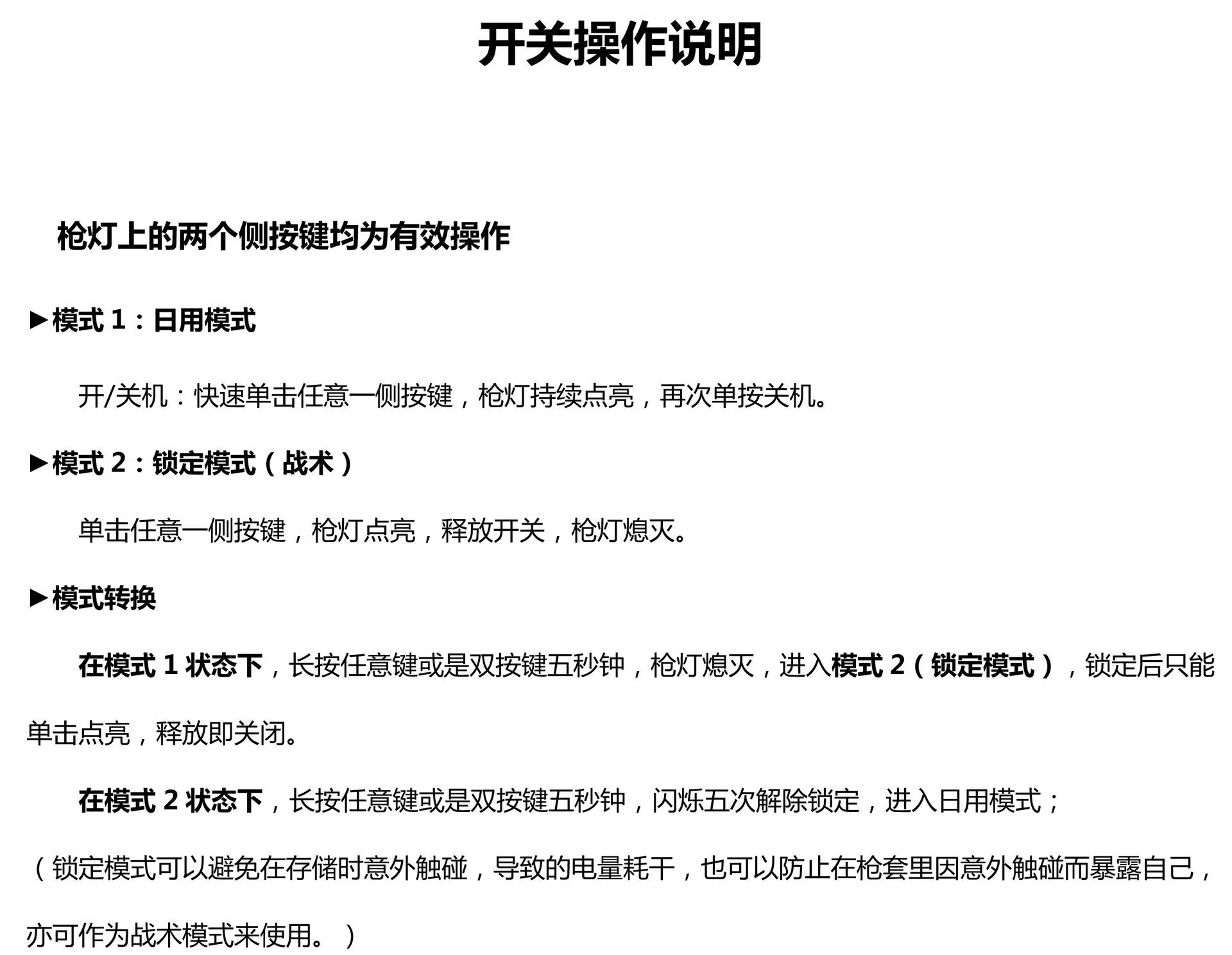 Aviso de preventa: La linterna tiene una garantía de 1 año, pero la batería no está cubierta por ella. Al usar la linterna: Compruebe que las partes delantera y trasera central de la linterna estén bien apretadas. Cómo usar la batería: El polo positivo (+) de la batería mira hacia el cabezal de la linterna y el polo negativo (-) mira hacia el interruptor en la parte trasera. Se prohíbe la descarga excesiva durante el uso de la batería. Una descarga excesiva provocará que la batería no se cargue o se deseche. El voltaje debe mantenerse durante la carga y la descarga. La batería debe cargarse cada poco tiempo cuando no esté en uso (cargue la batería una vez al mes si no está en uso) para evitar que el voltaje de la batería baje. Requisitos de almacenamiento para baterías cilíndricas de iones de litio: Guarde la batería en un lugar limpio, seco, fresco, seco y bien ventilado, sin elementos inflamables ni materiales corrosivos. Mantenga la batería alejada del fuego y fuentes de calor, evite la luz solar y la lluvia, y no la invierta ni la presione.