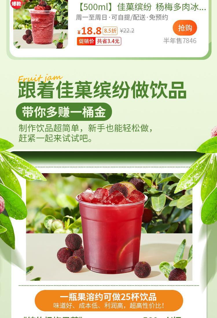 Mermelada de Myrica de colores Jia Fu, té de frutas con burbujas, té de frutas para tienda de té con leche.