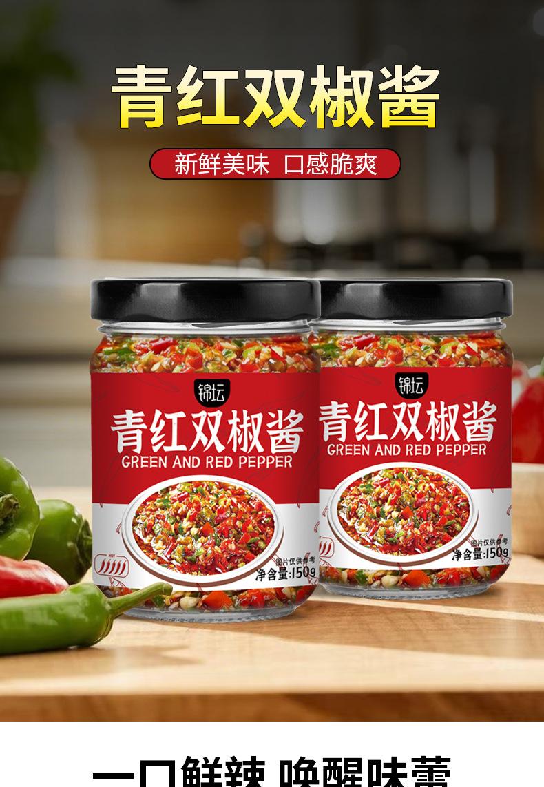 Salsa Doble de Pimientos Jintan Verde y Rojo 150g Salsa para Arroz Mezclada con Arroz, Fideos, Verduras Mixtas, Salsa de Chile Salteada Catering Mayorista 3 Botellas