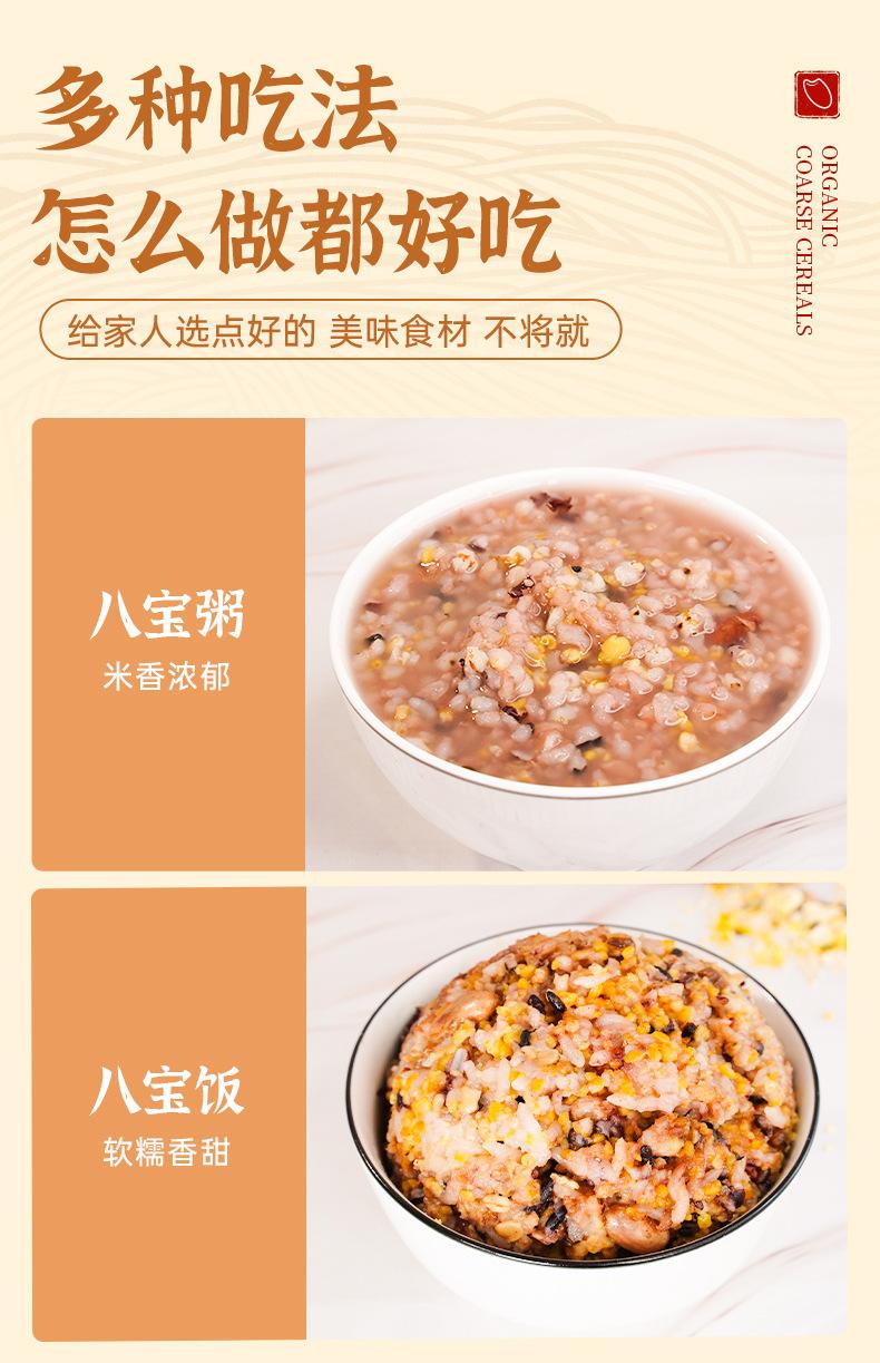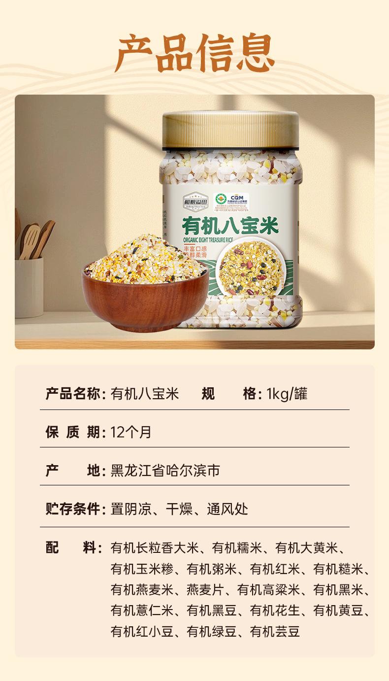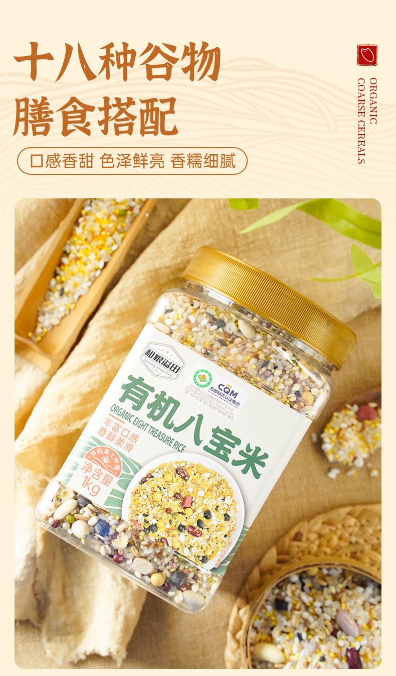 Organic eight-treasure rice 1kg, Organic brown rice 1kg, Organic black beans 900g, Organic black rice 1kg, Org...