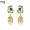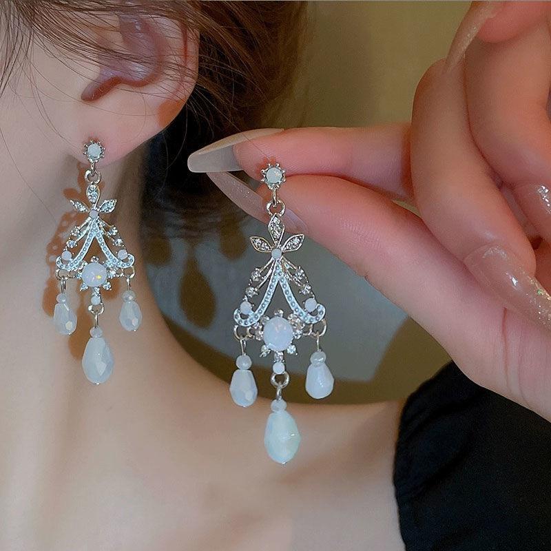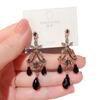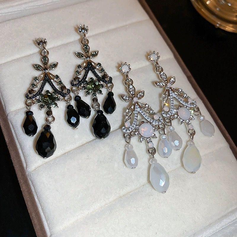 Pendientes de cristal negro de lujo estilo palacio retro 2024, nuevos y elegantes pendientes de plata con pasador de celebridades de Internet para mujer.