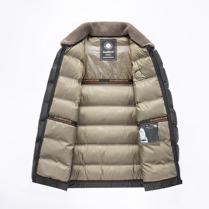 Abrigo acolchado de algodón de grafeno para hombre, invierno, negocios, ocio, a prueba de viento, frío, cálido, almacenamiento de calor, bloqueo de temperatura, solapa, cuello de piel, chaqueta acolchada de algodón