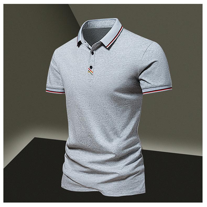 Camiseta de manga corta de color sólido para hombre, polo informal de marca de moda con solapa de negocios fina, novedad de verano de 2024