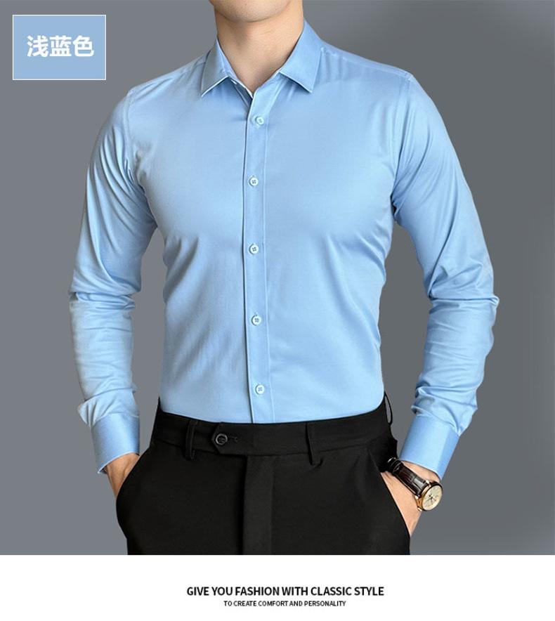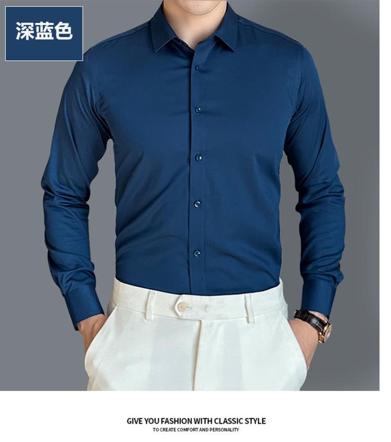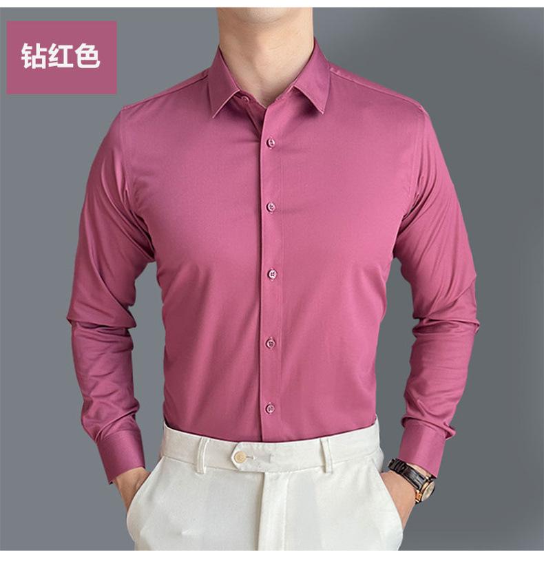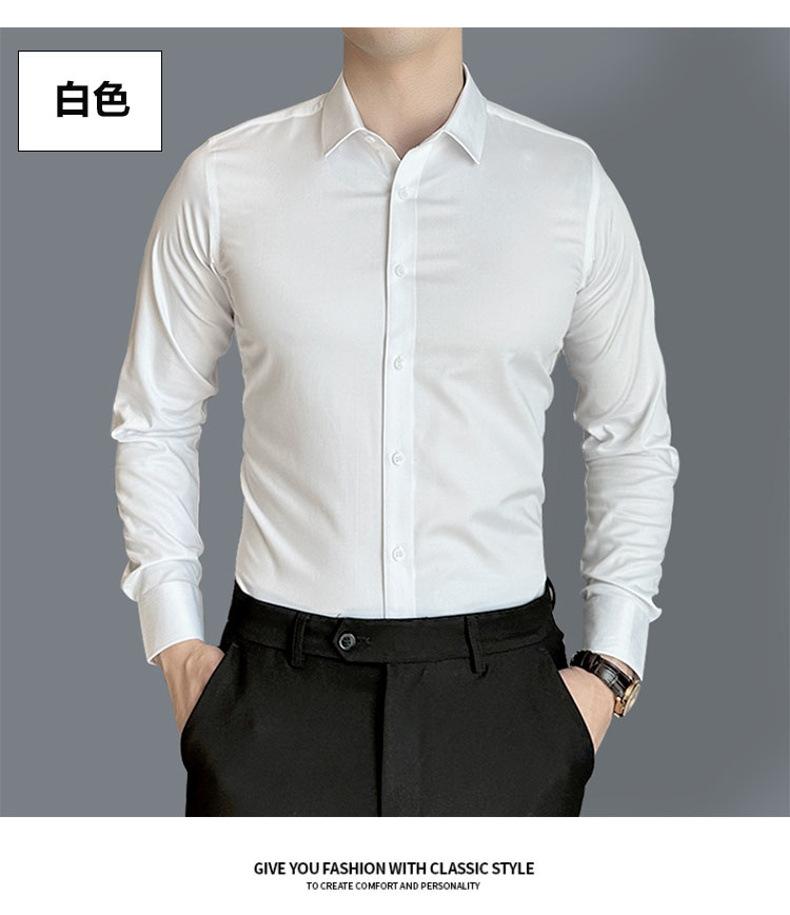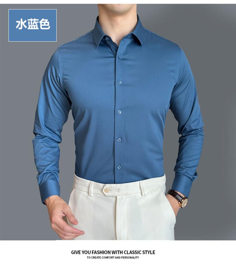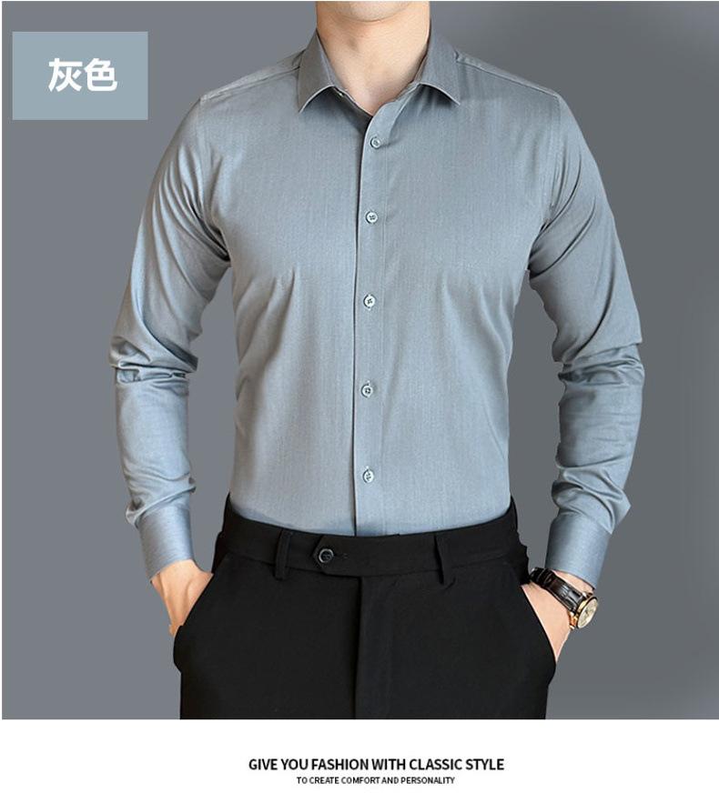 Camisa de fibra de bambú para hombre, camisa de manga larga, elástica, sin planchado, ropa de trabajo, camisa de vestir de negocios para hombre.