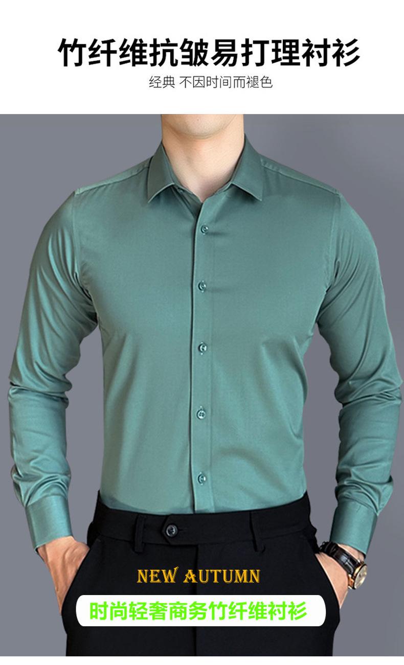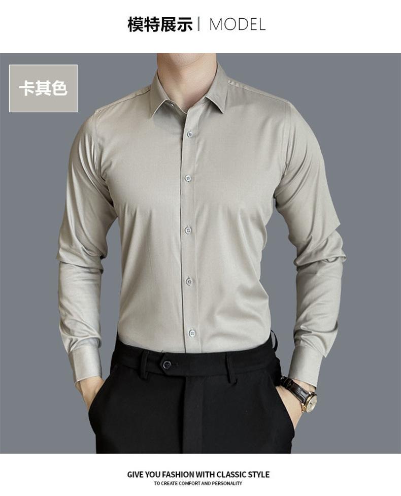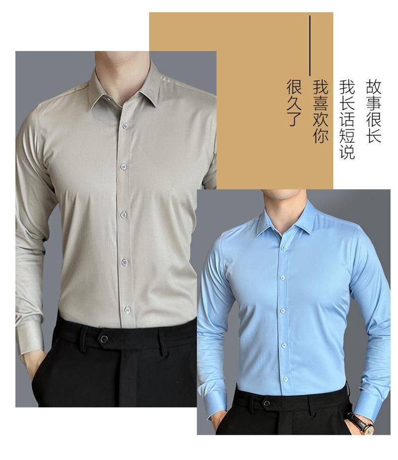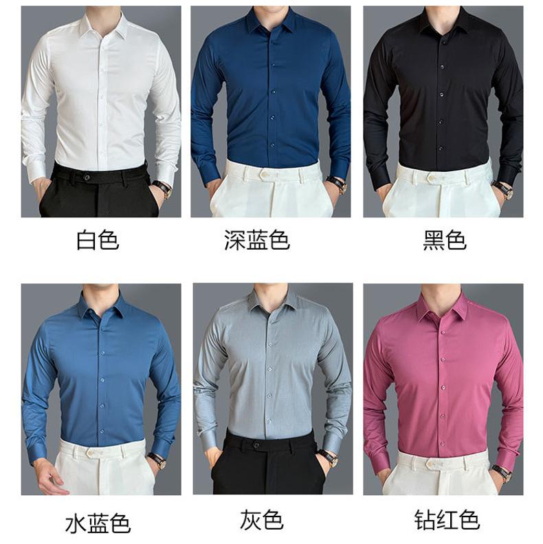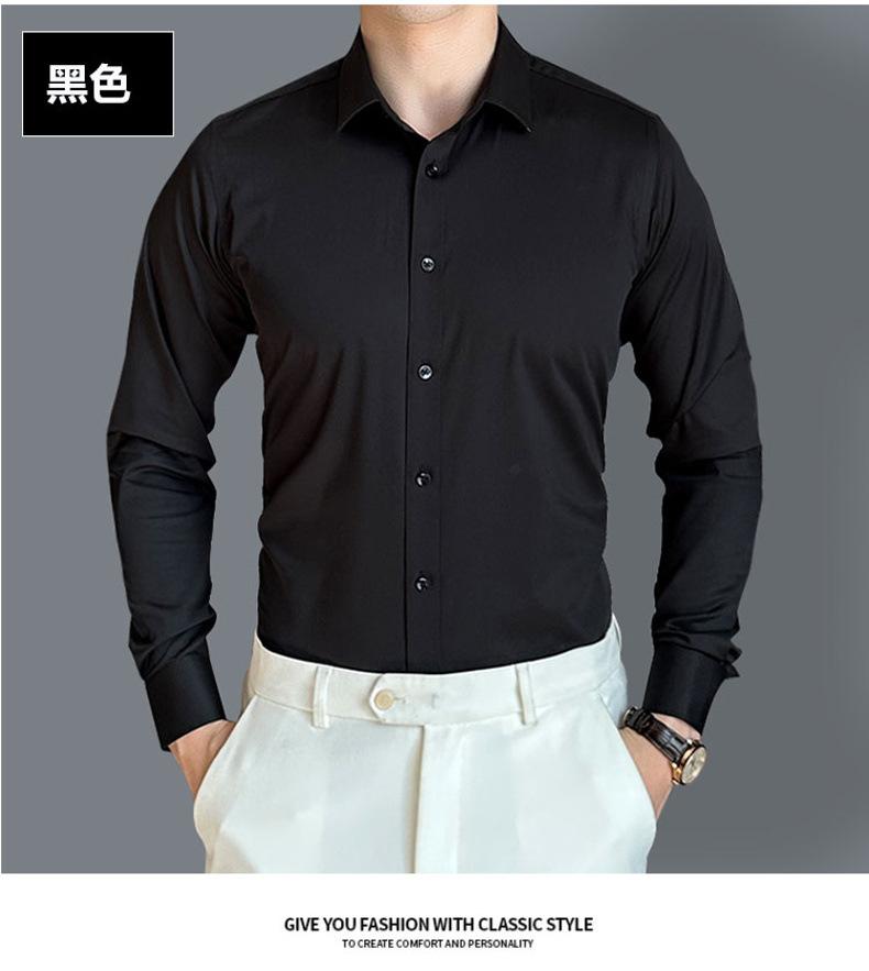 Camisa de fibra de bambú para hombre, camisa de manga larga, elástica, sin planchado, ropa de trabajo, camisa de vestir de negocios para hombre.