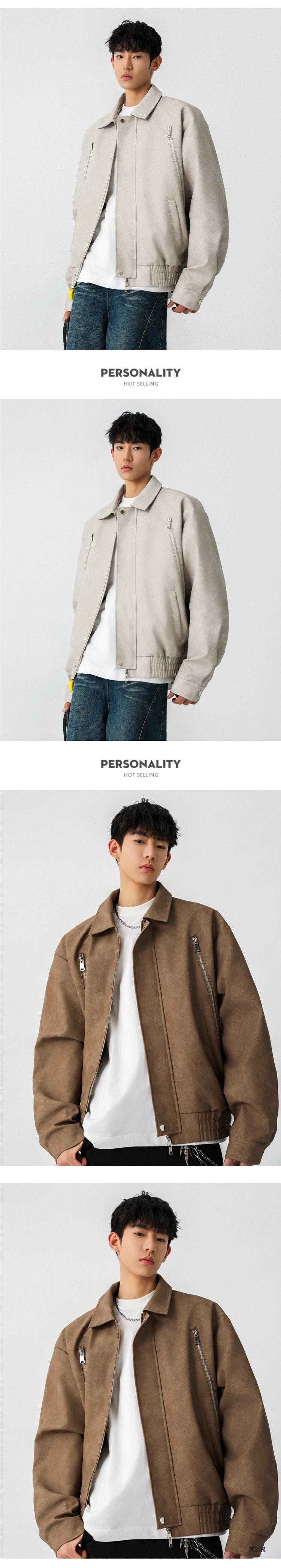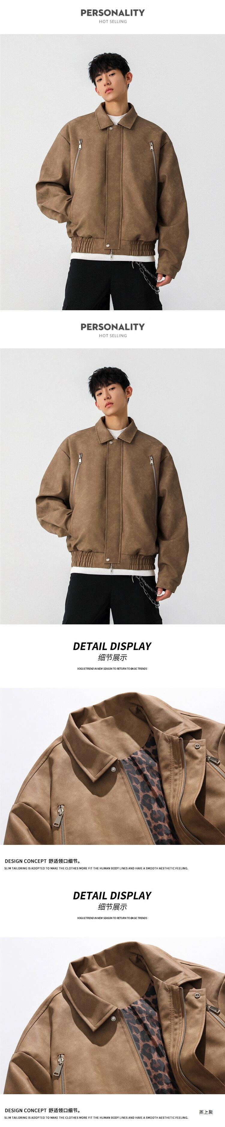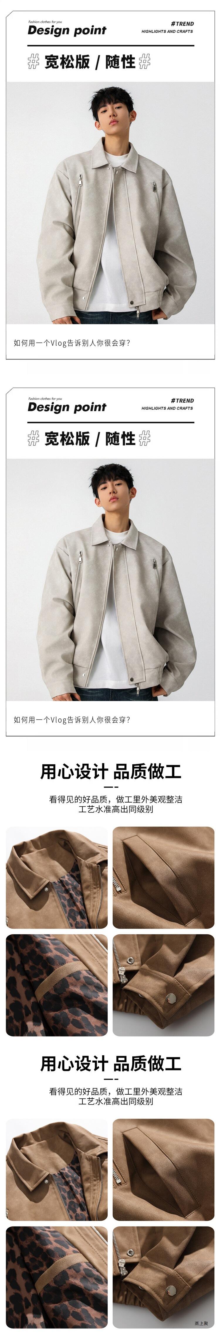 Chaqueta de Cuero PU American Flying para Hombre Primavera y Otoño Americano Retro Moda Urbana Cachorro Guapo Solapa Suelta Chaqueta de Cuero