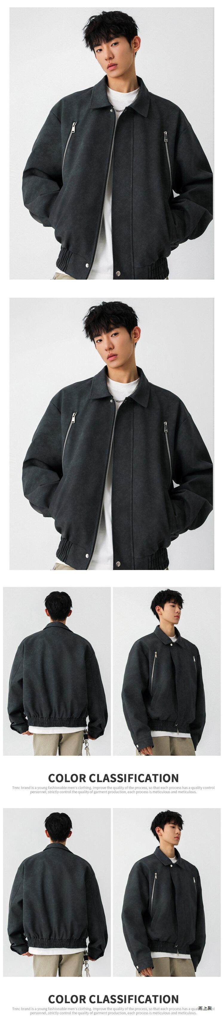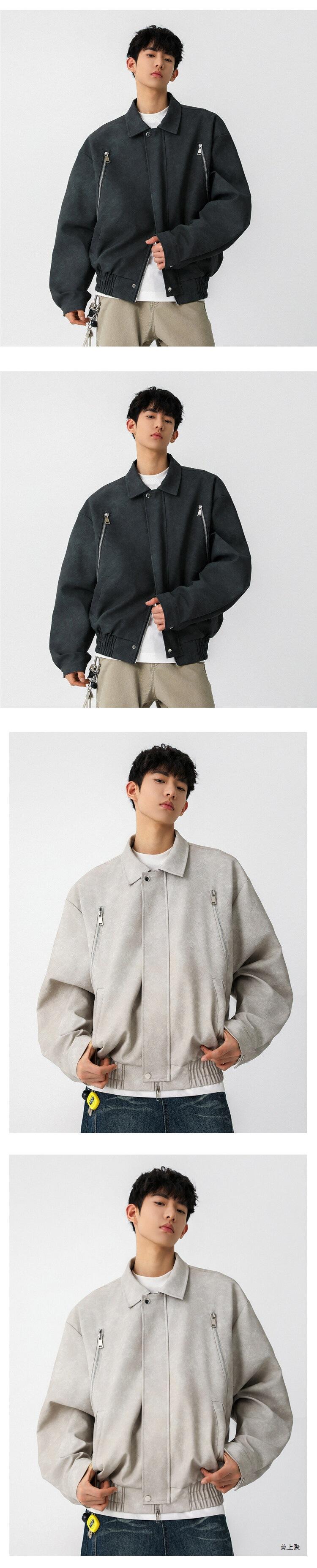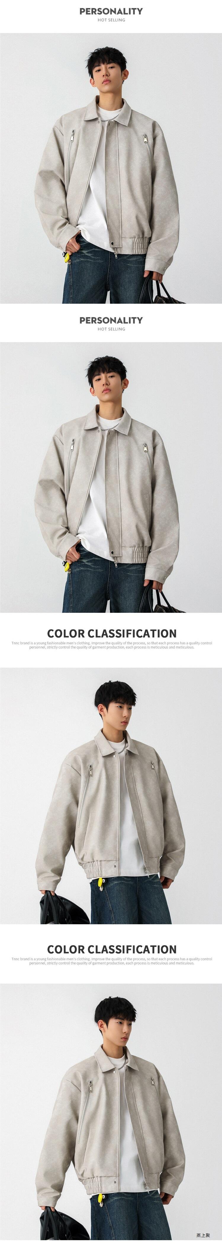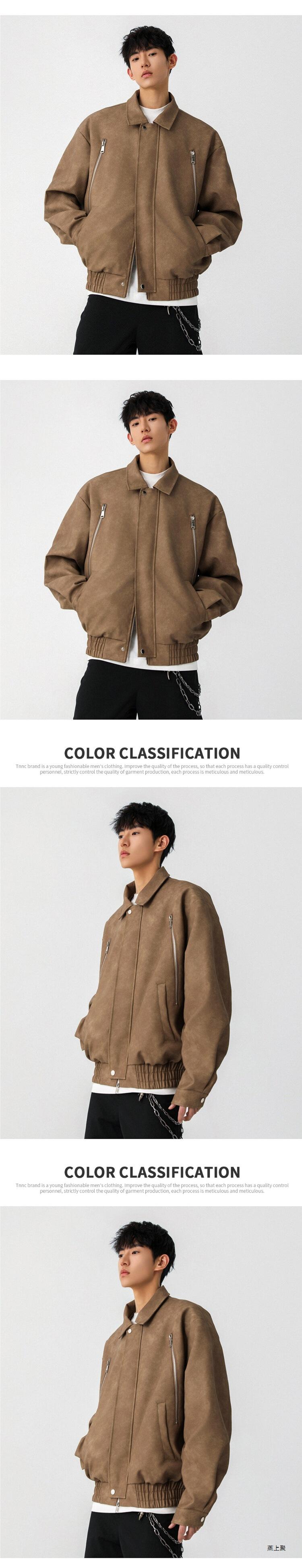 Chaqueta de Cuero PU American Flying para Hombre Primavera y Otoño Americano Retro Moda Urbana Cachorro Guapo Solapa Suelta Chaqueta de Cuero