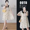 Vestido de maternidad de verano 2024, nuevo, a la moda, dulce, floral, suelto, de talla grande, para embarazadas, con hebilla abierta para amamantar.