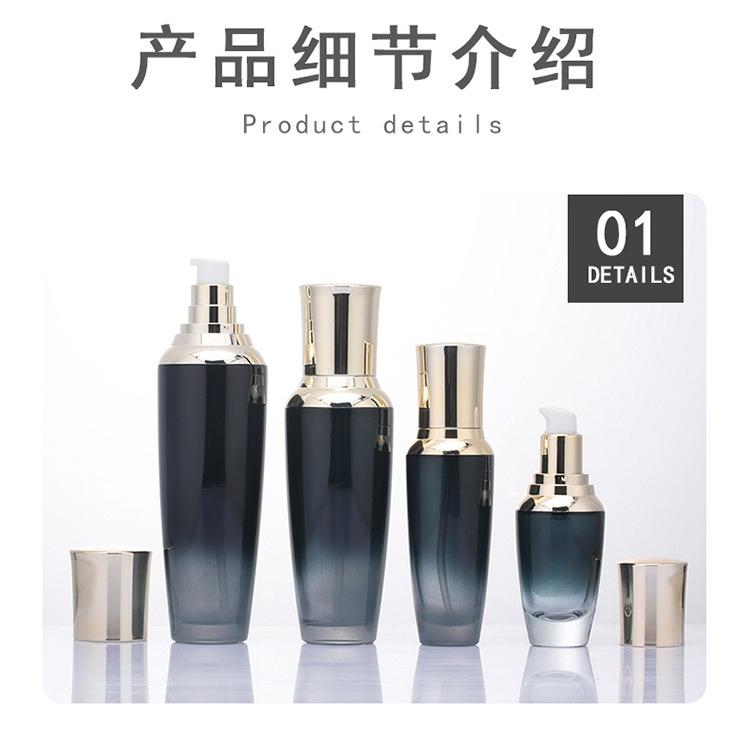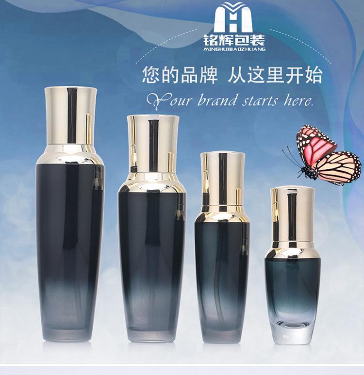 Set cosmético de botella negra pequeña botella de vidrio productos para el cuidado de la piel Crema de agua esencia botella rociadora 100 ml Botella a presión personalizada