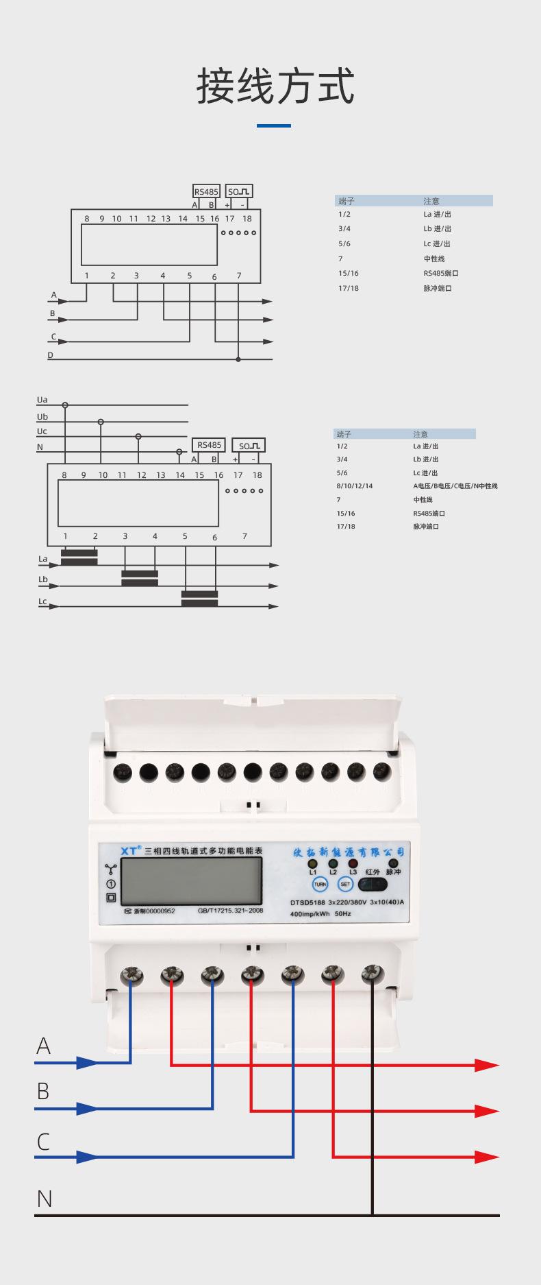 Medidor multifunción trifásico 7P, medidor inteligente de micro riel guía, parámetros de modificación de clave, una variedad de protocolos de comunicación con retroiluminación