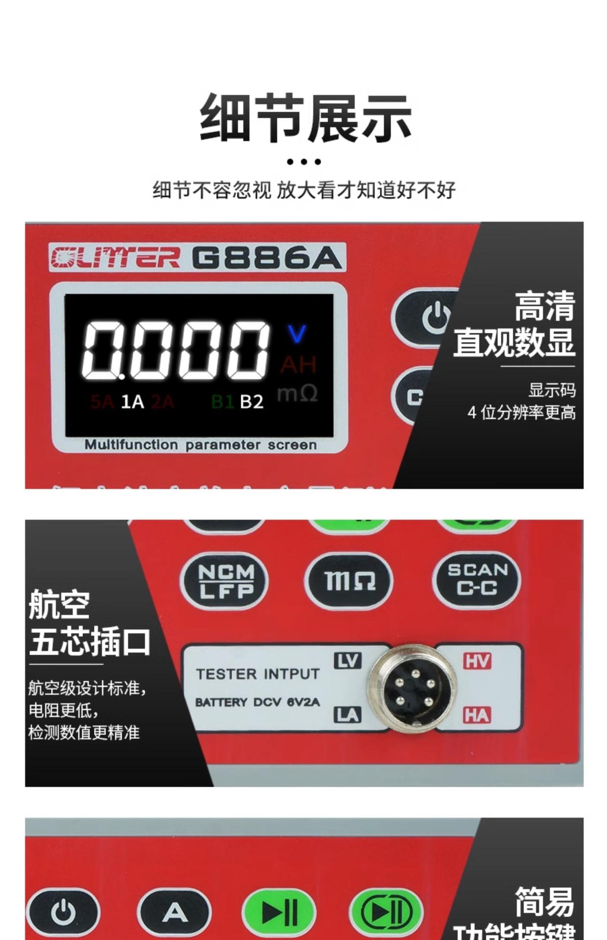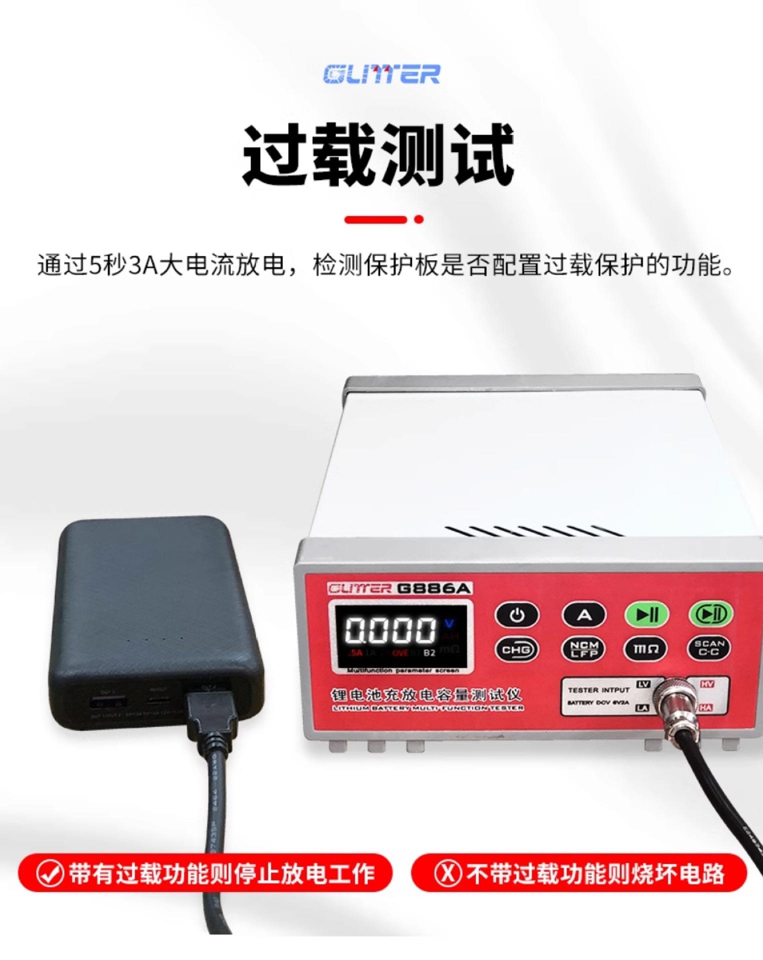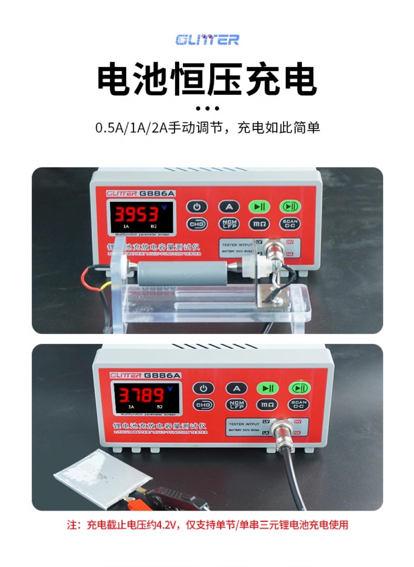 Gelingde G886A Probador Integral de Batería de Litio Única Detección Ternaria de Litio Hierro Selección Voltaje Capacidad Resistencia Interna