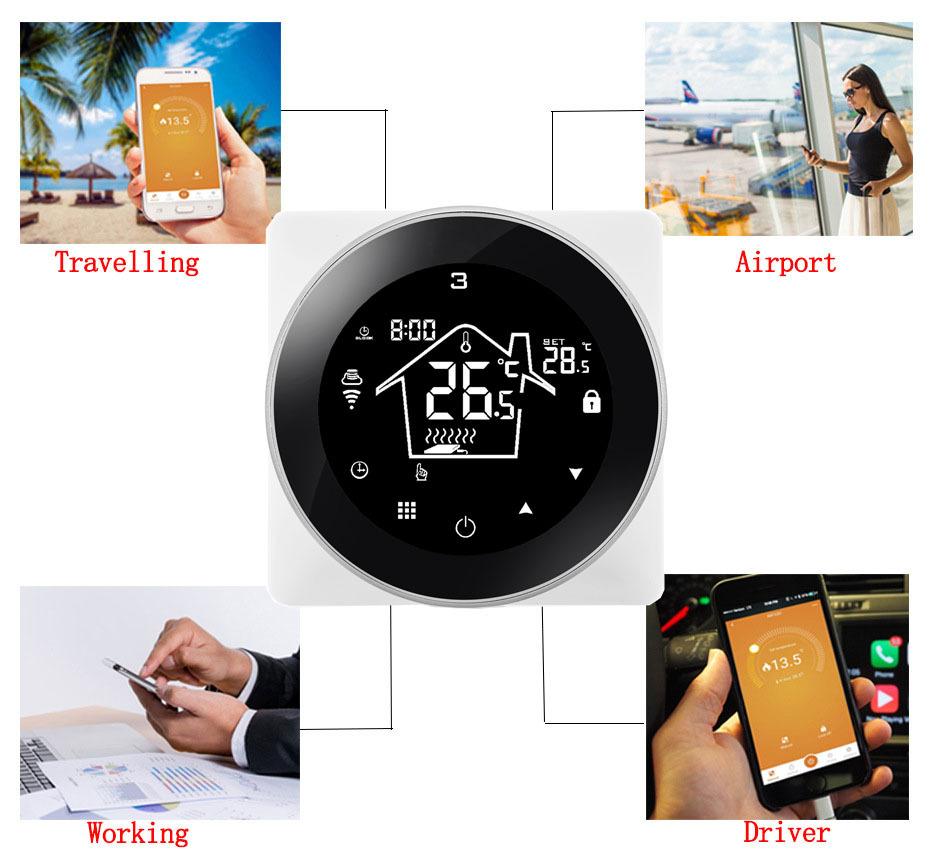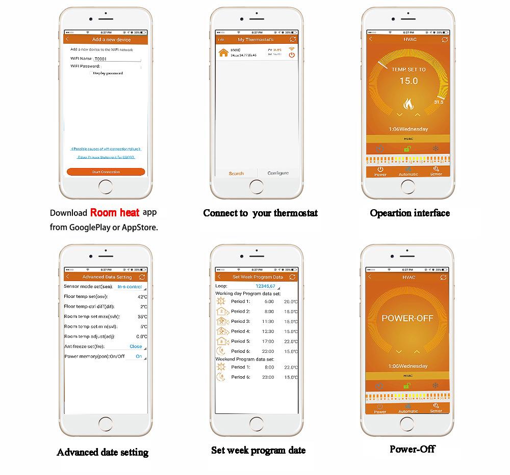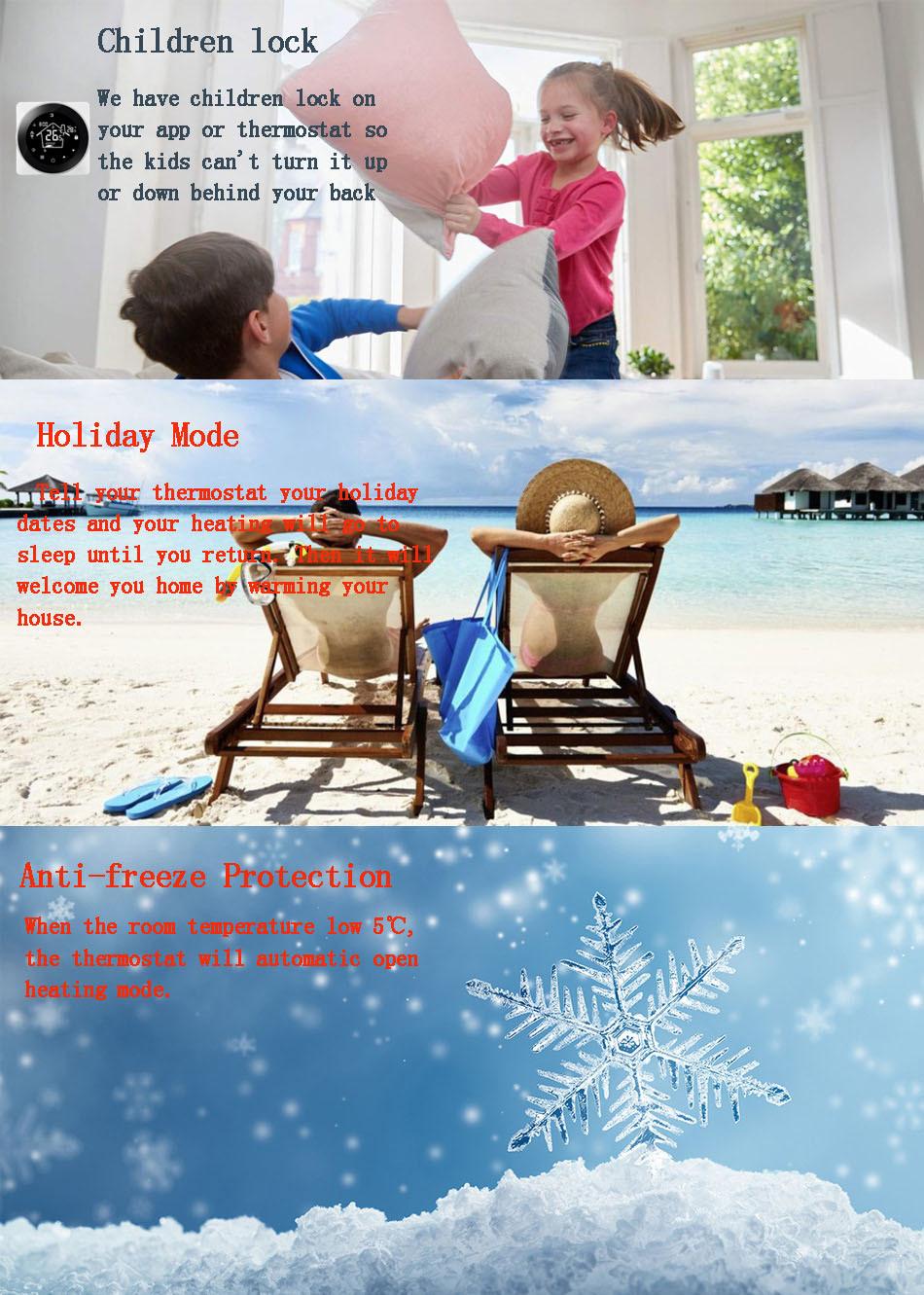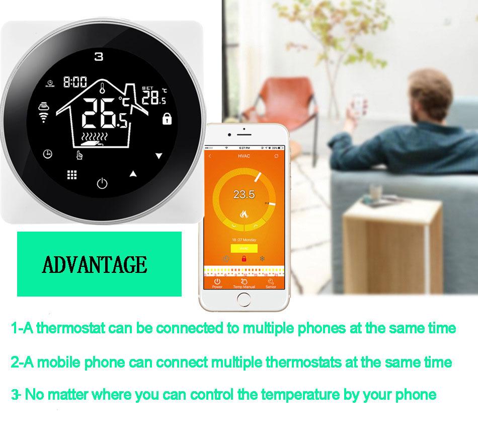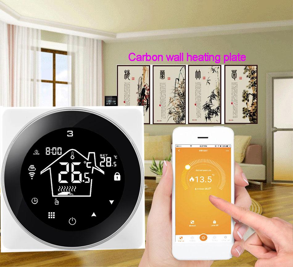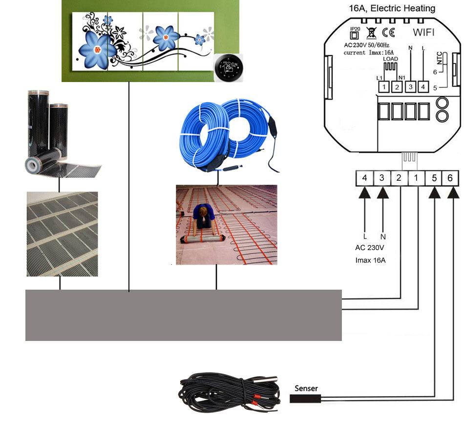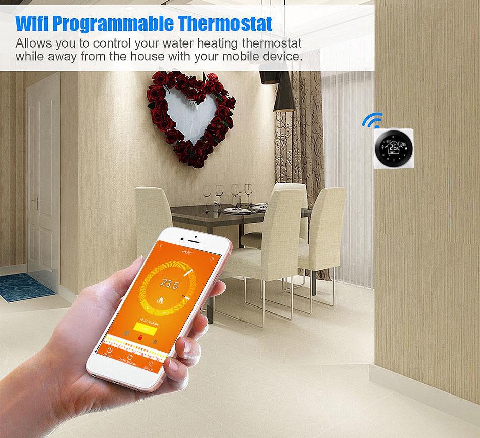 HY312WE-2-WiFi Controlador de Temperatura con Calefacción Eléctrica LCD Termostato Programable Especial para Calefacción, Multifunción, Pantalla LCD Grande Termostato Interior, adopta tecnología de control por microcomputadora, compara la temperatura interior con la temperatura establecida y controla el arranque y la parada del equipo de calefacción a través de relés para lograr una temperatura interior constante y ahorro de energía. Toque el botón para operar, la pantalla LCD mostrará la temperatura interior, la temperatura del equipo, la semana, el reloj, la indicación del interruptor temporizador y la indicación del estado de trabajo. Este controlador es un nuevo modelo desarrollado en respuesta a la demanda del mercado y tiene una gran pantalla LCD. Es simple de operar y tiene funciones completas. Puede controlar: válvulas de bola eléctricas, válvulas eléctricas, válvulas de calefacción eléctrica, válvulas solenoides, calentadores, películas de calefacción eléctrica, cristales de carbono, etc. Control WiFi por teléfono móvil