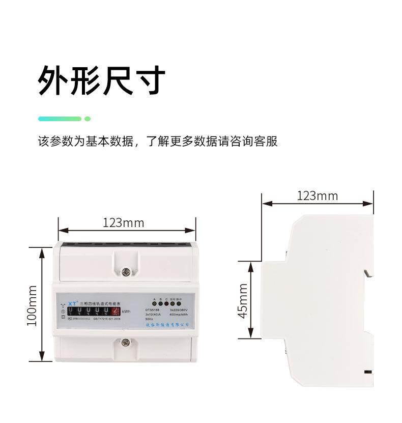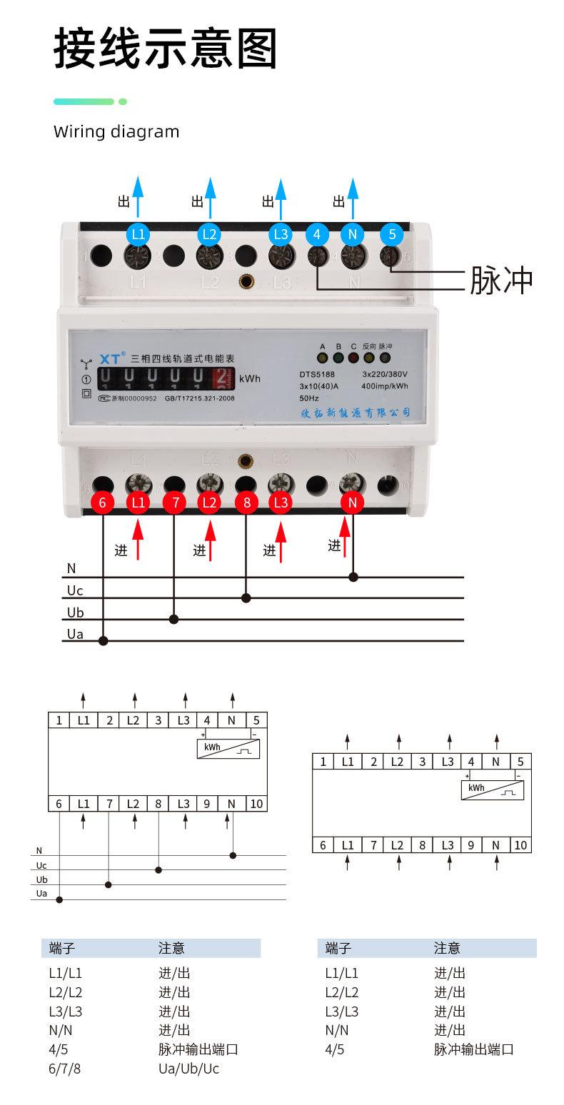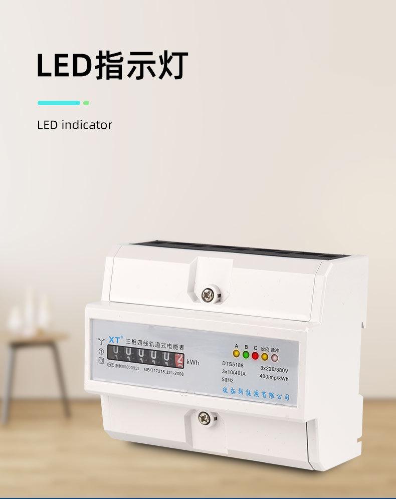 Medidor micrométrico trifásico de cuatro cables 7P, pantalla de medidor con riel guía, modo de cableado de medidor de entrada y salida descendente o de entrada y salida ascendente