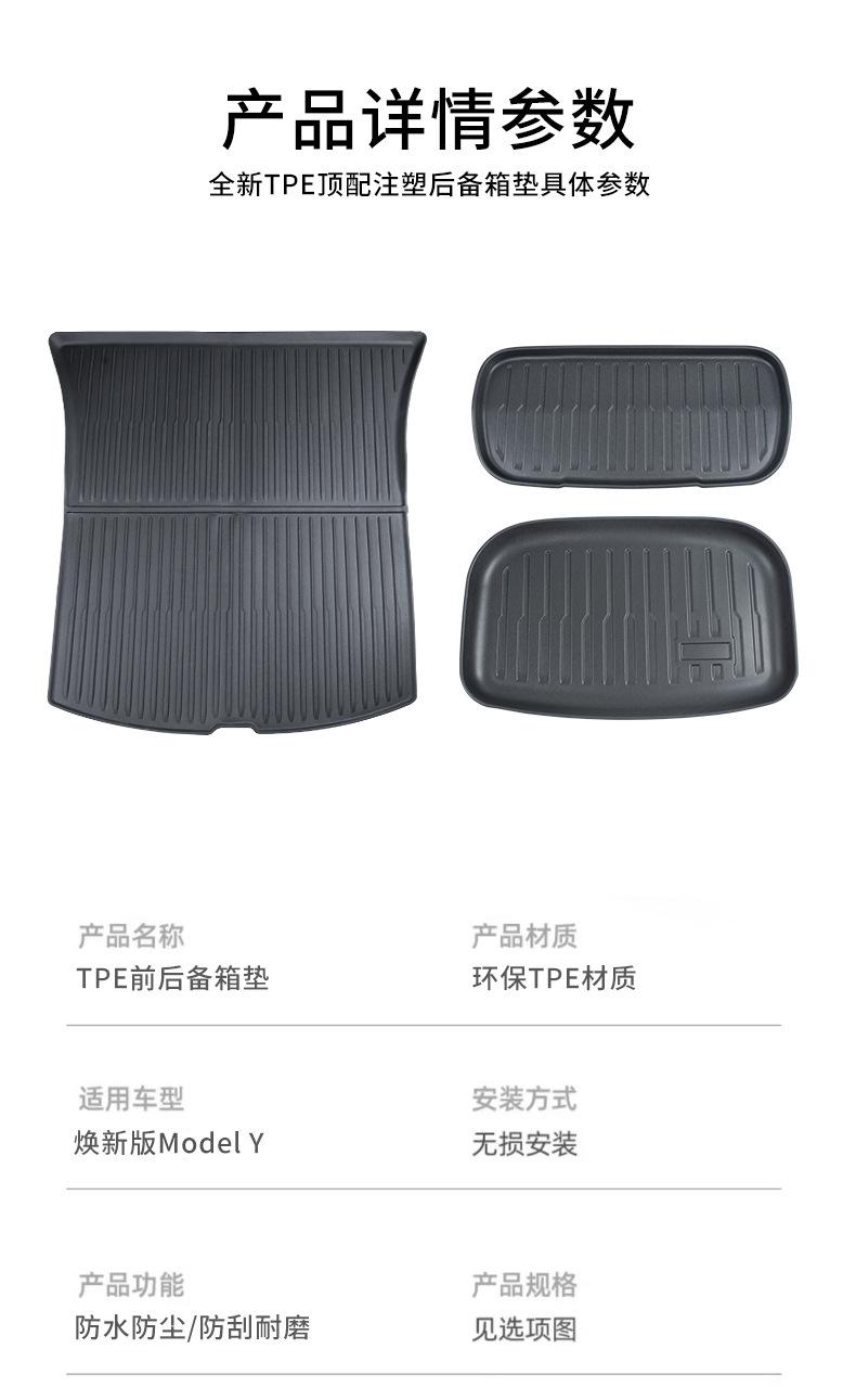 Adecuado para Tesla Model Y Alfombrilla de Maletero Tpe Alfombrilla de Maletero Delantera y Trasera Accesorios de Modificación Model Y Venta al por Mayor
