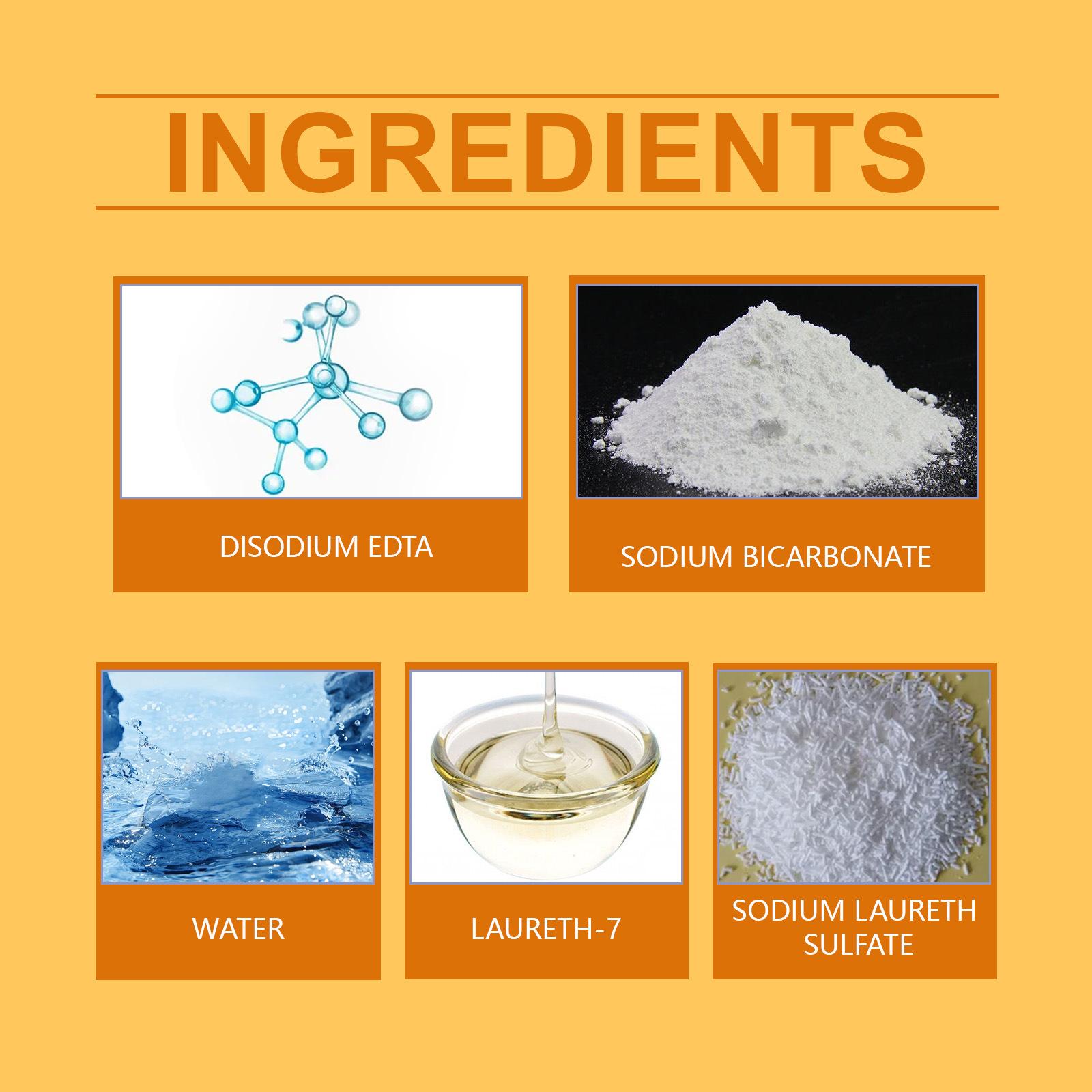 Water, disodium edta, sodium bicarbonate, laureth-7, sodium laureth sulfate