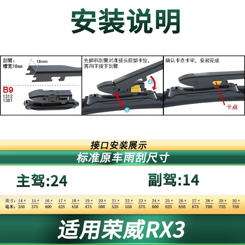Adecuado para limpiaparabrisas de coche Roewe Rx3, limpiaparabrisas universales multifuncionales sin hueso con tira de goma silenciosa específica para coche original