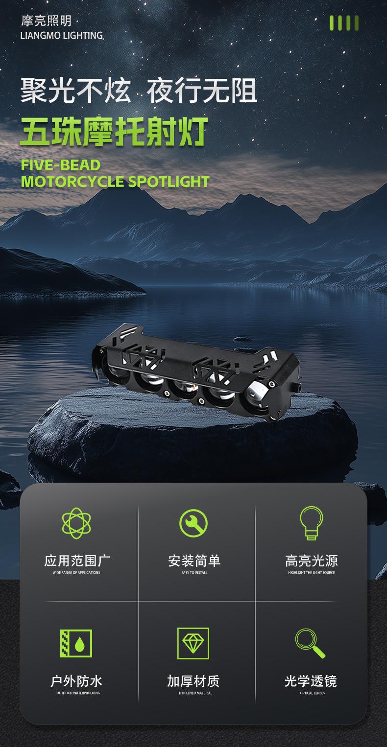Faro de motocicleta Led Luz de coche Alto brillo Lente de cinco cuentas Foco Luz modificada de motocicleta Luces auxiliares amarillas y blancas