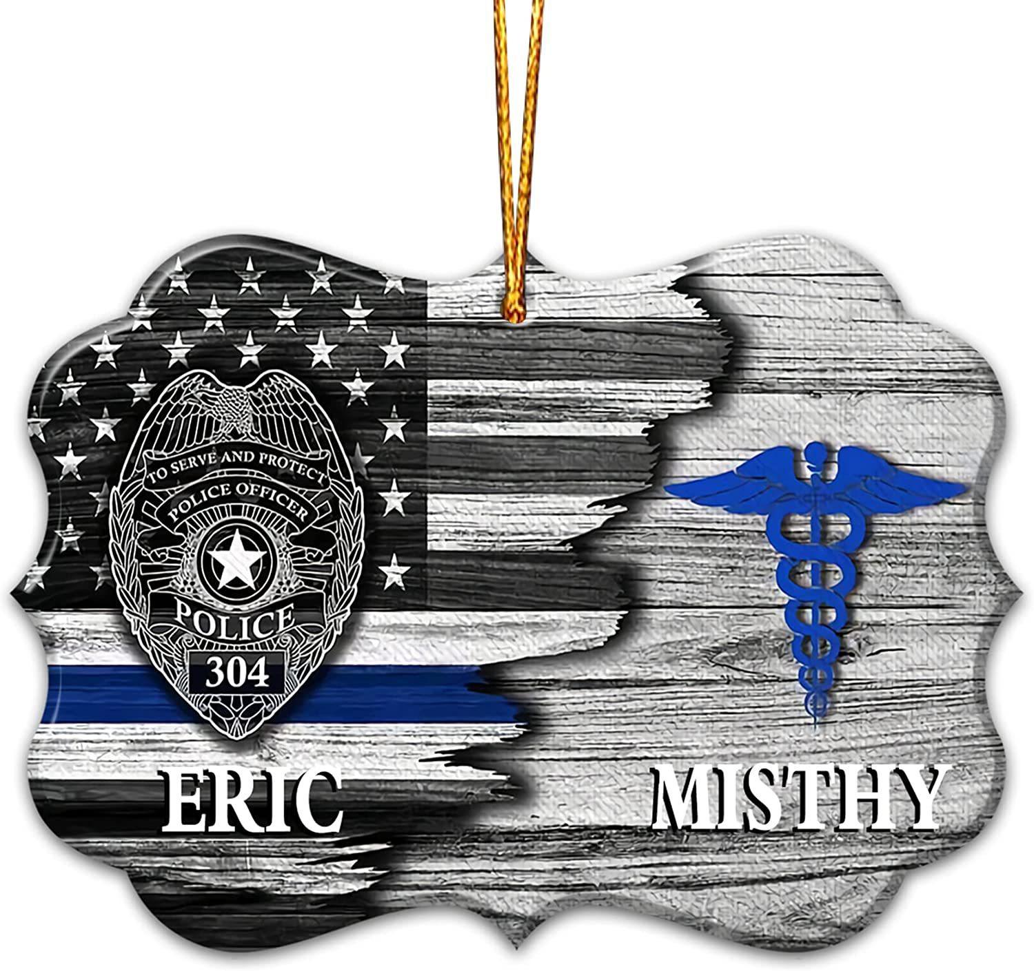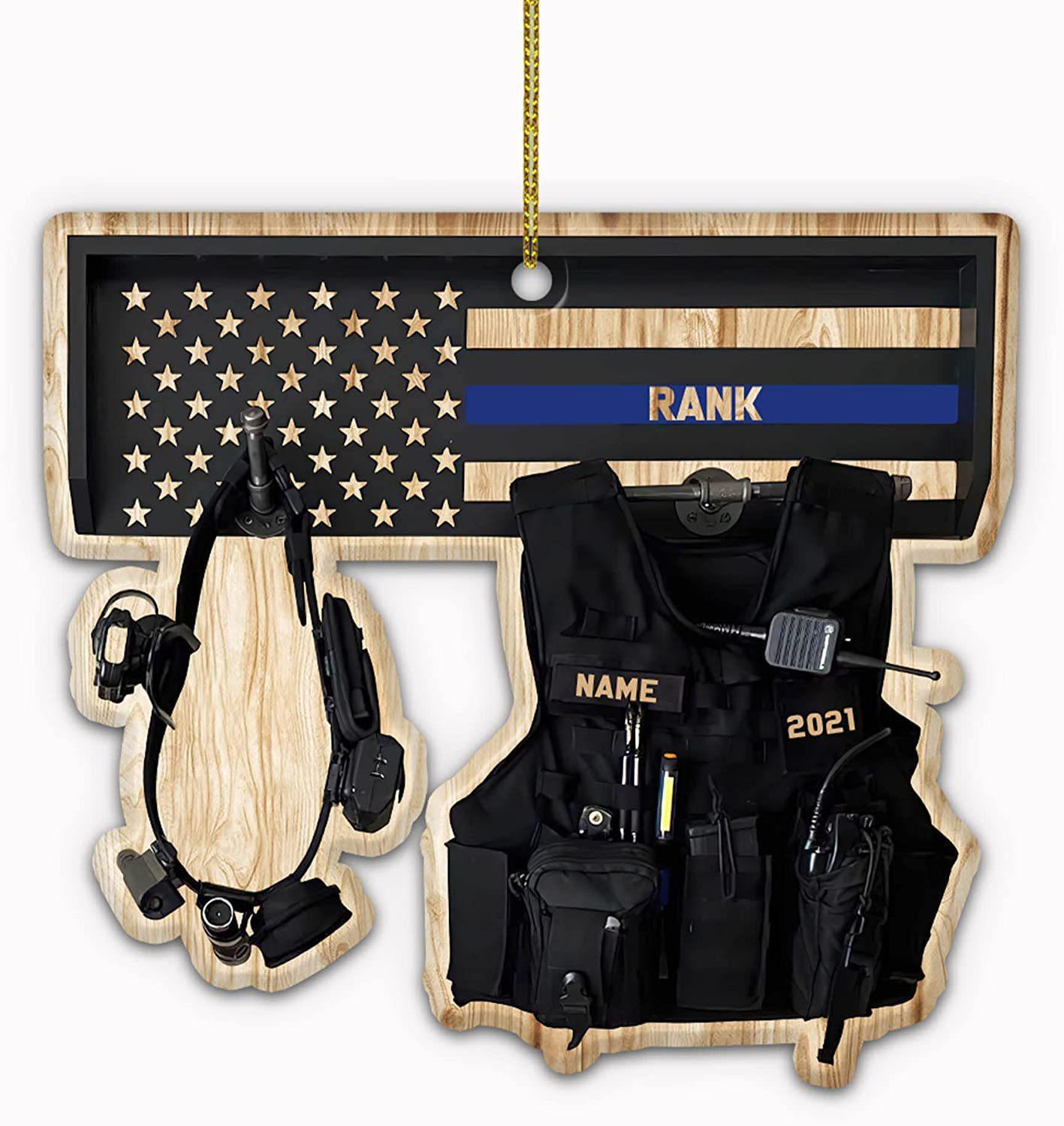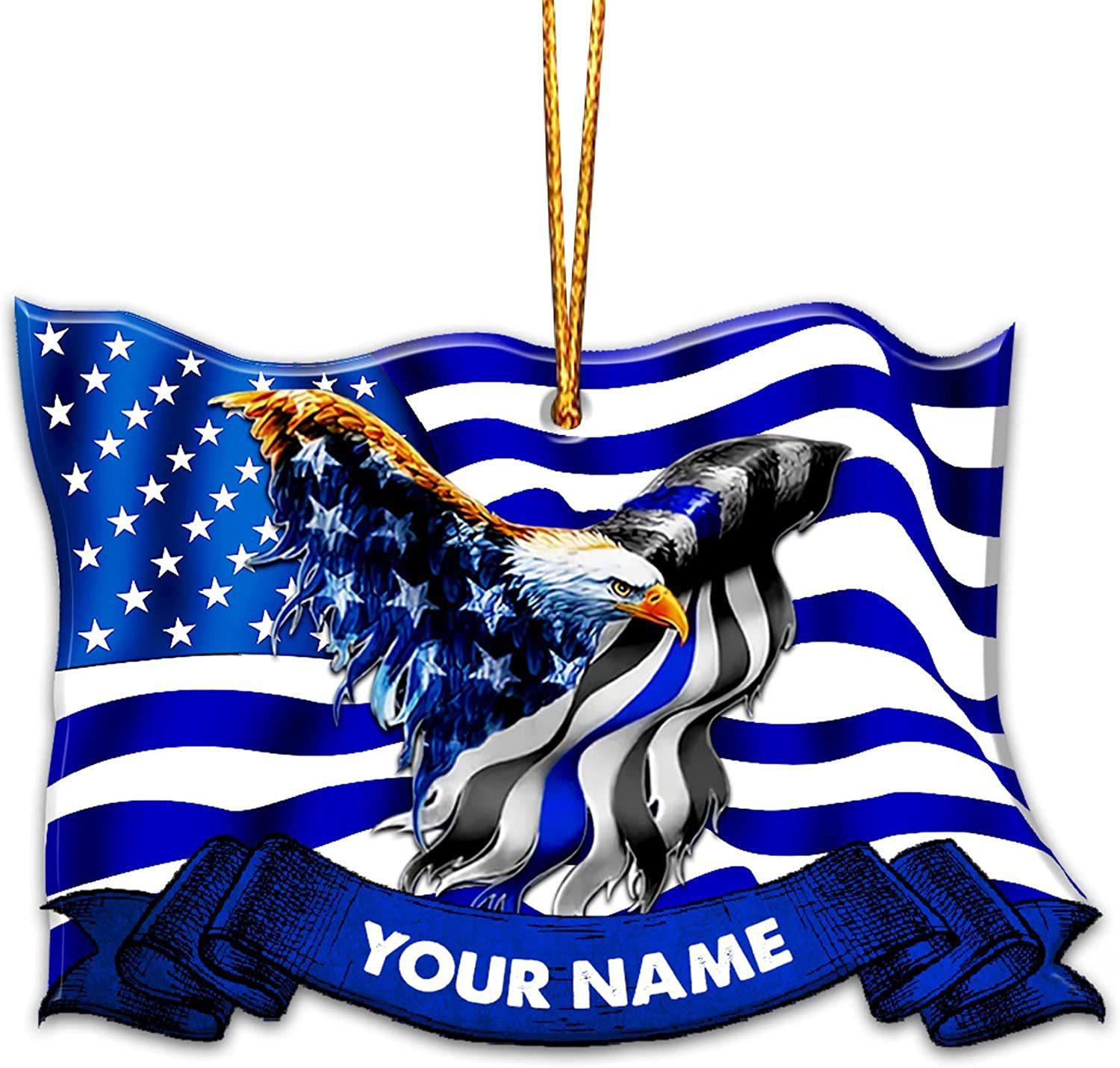 Adornos de águila de policía nuevos transfronterizos, regalos de policía, adornos de bandera de la línea azul delgada, decoraciones navideñas para el hogar