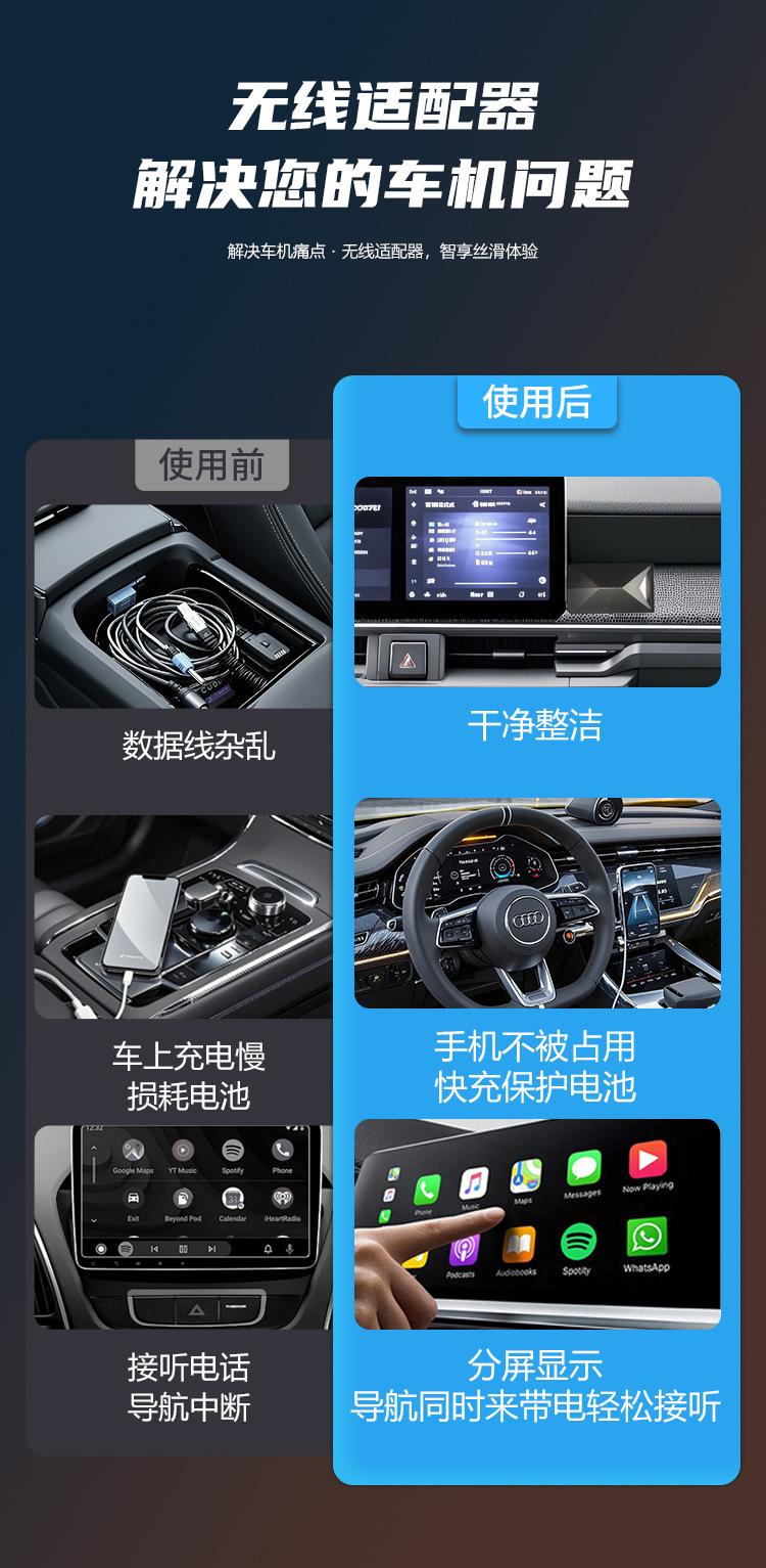 Caja Carplay de Comercio Exterior Apple Android 2 en 1 con Cable a Inalámbrico Caja de Interconexión para Coche Exclusivo Transfronterizo