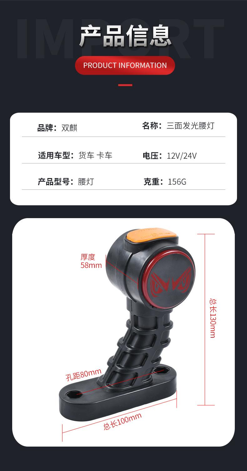 Luz de Cintura de Goma LED 12V24V de Punto Transfronterizo Lámpara de Brazo Lámpara Lateral Luz Indicadora de Ancho de Camión Señal de Giro Lámpara Lateral de Camión