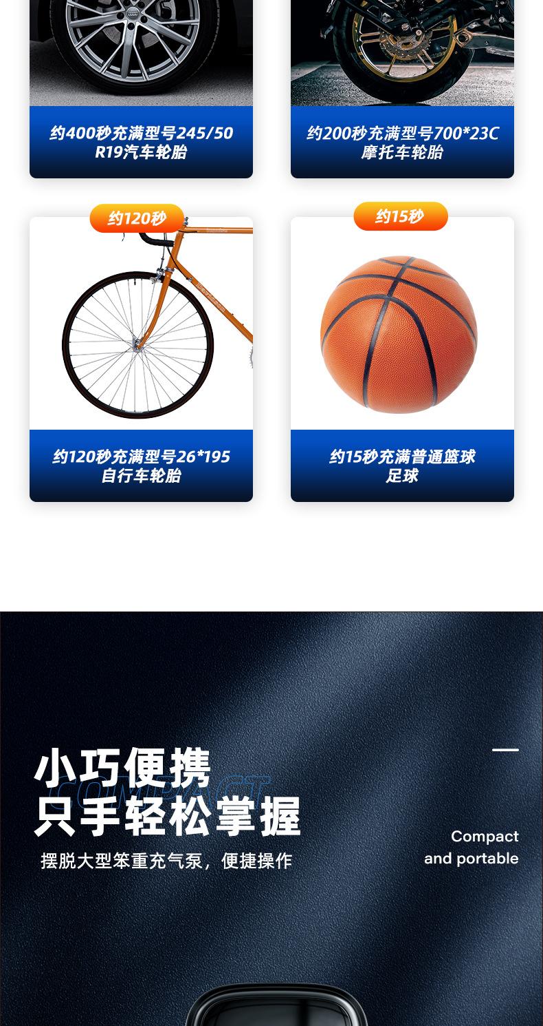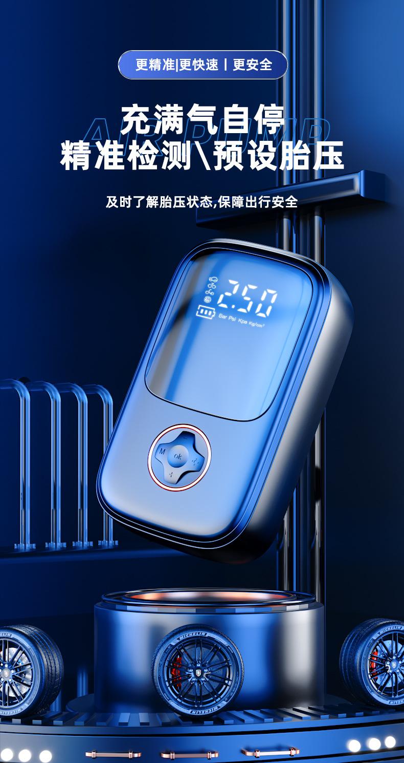 Bomba de aire portátil inalámbrica inteligente para motocicleta y bicicleta con explosión transfronteriza, bomba de aire para llantas de coche y coche eléctrico