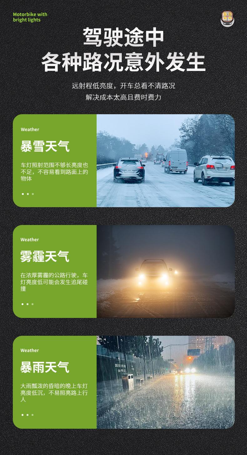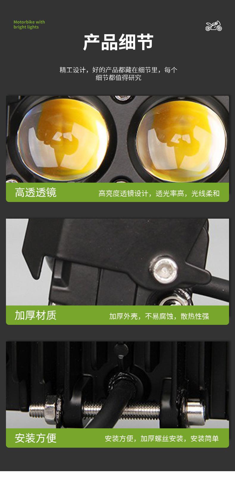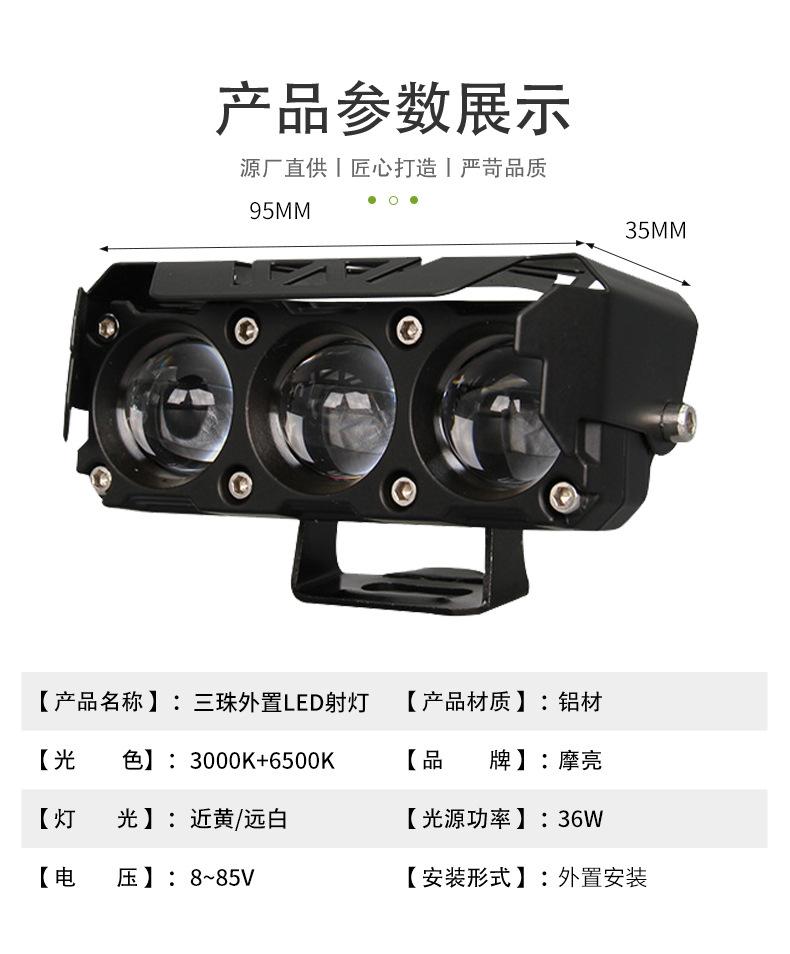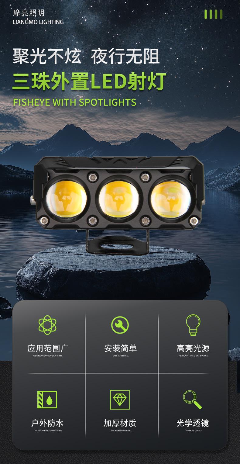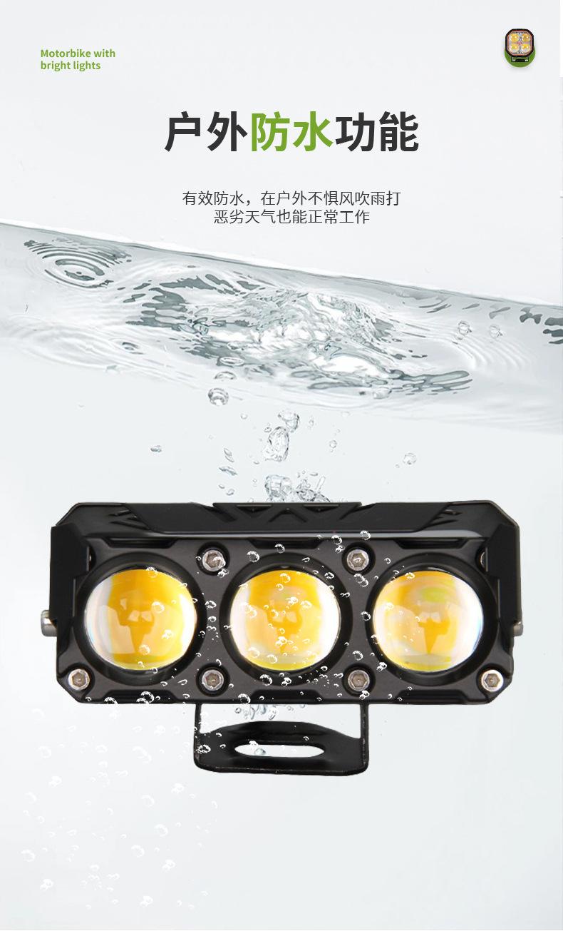 Faro auxiliar de motocicleta de tres ojos, lámpara de motocicleta externa, instalación sencilla, dos colores amarillo y blanco, lámpara de motocicleta impermeable para exteriores
