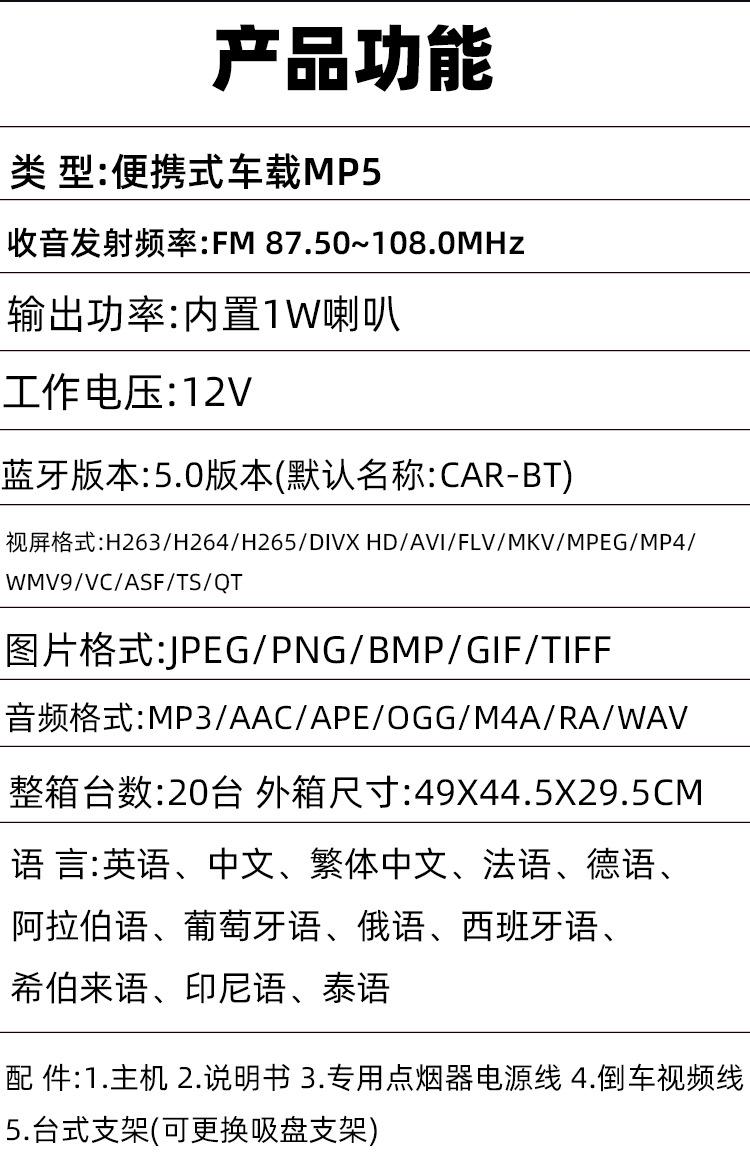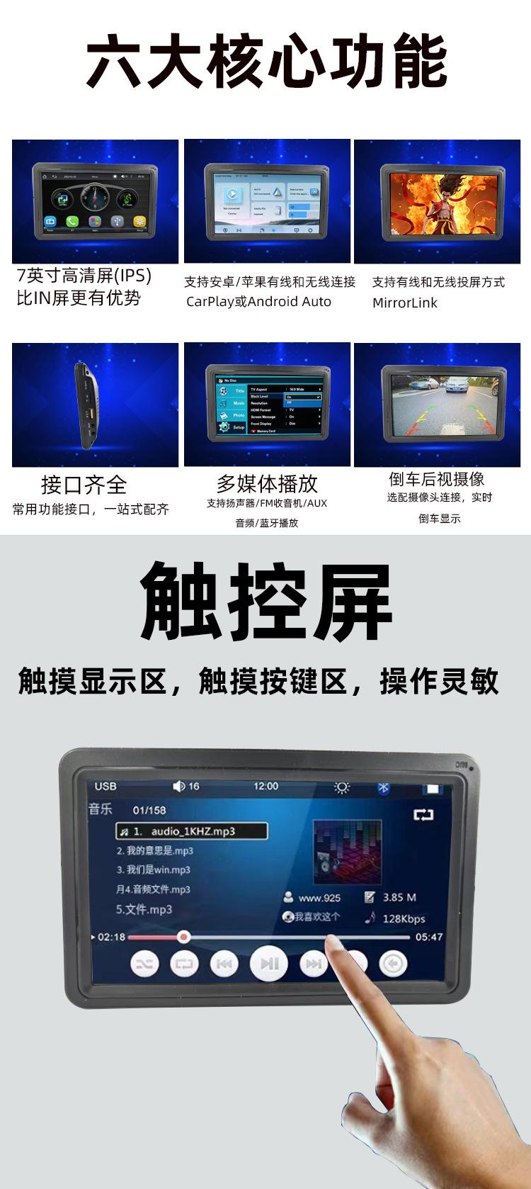 MP5 de 7 pulgadas portátil inalámbrico carplay multimedia para coche Bluetooth transmisor FM HD marcha atrás PND