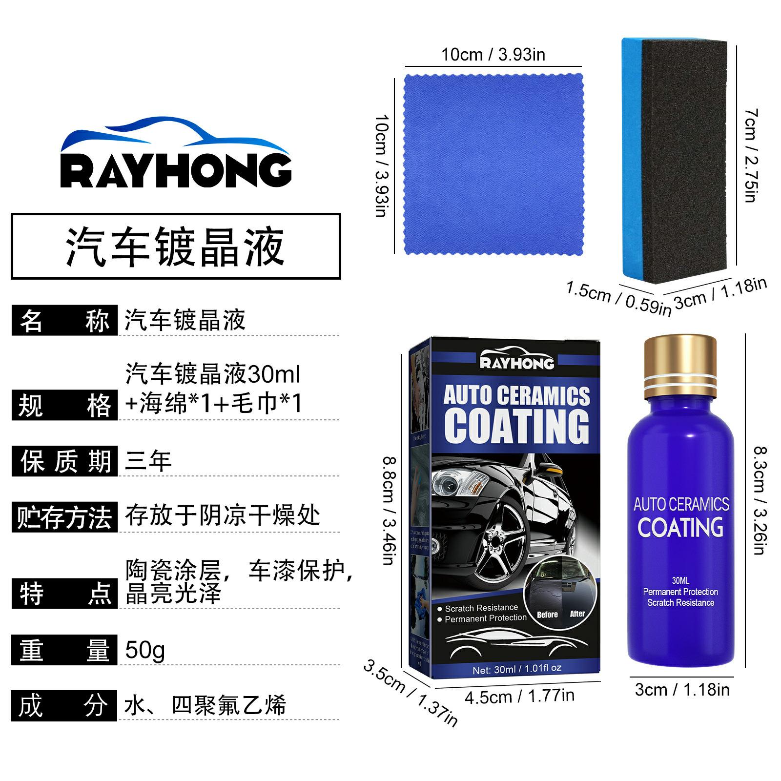Líquido de limpieza y descontaminación Rayhong para revestimiento de cristales de automóviles, resistente al agua, al polvo y a los arañazos, para el mantenimiento de la pintura del automóvil, con revestimiento renovado.