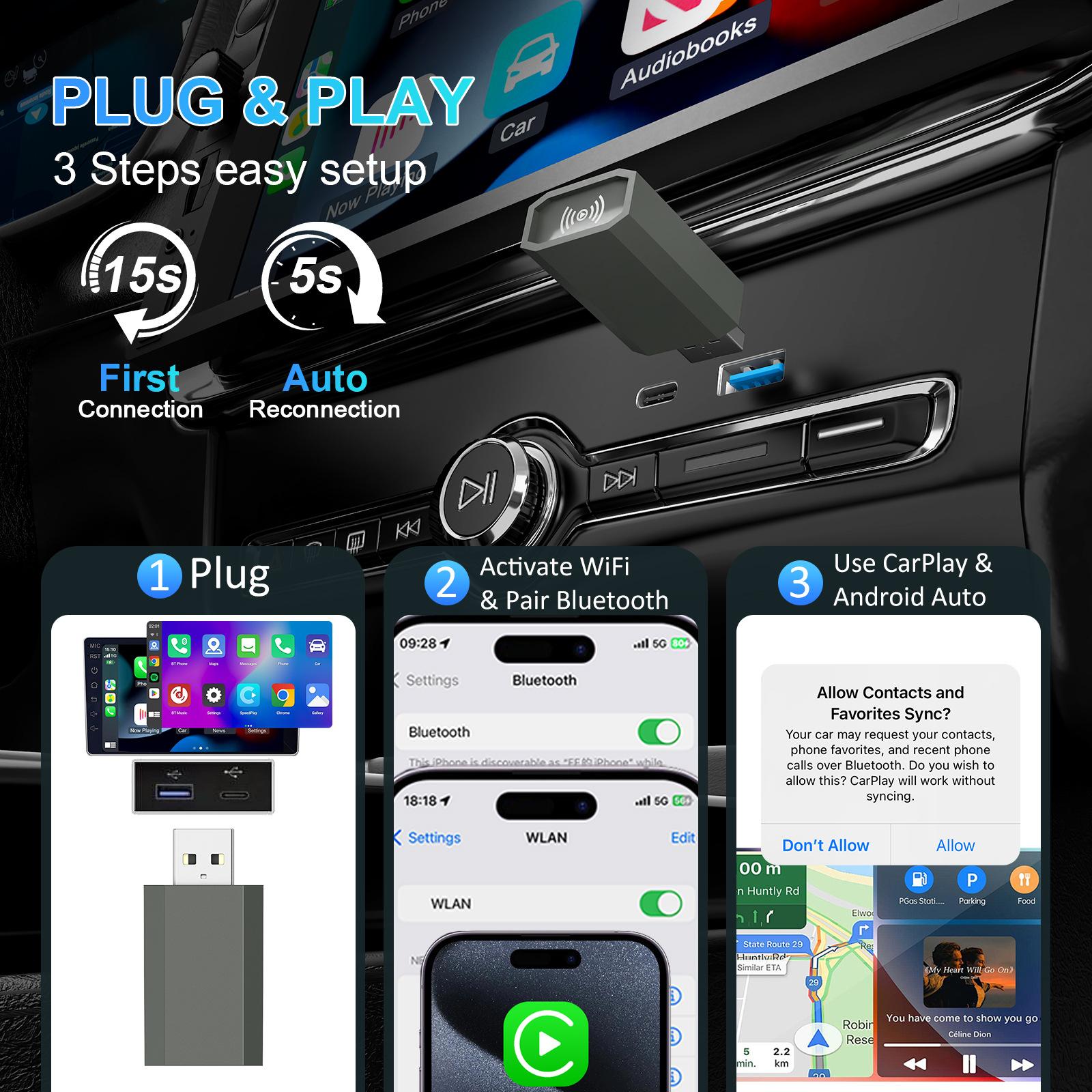 ✅ Memoria Inteligente: Después del primer emparejamiento exitoso, se conectará automáticamente cuando vuelva a arrancar el vehículo, ahorrando tiempo y preocupaciones.