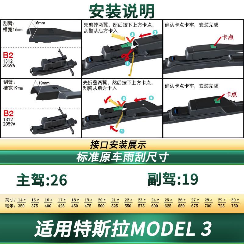 Adecuado para Tesla Modelo 3/Versión Renovada de Limpiaparabrisas de Coche Limpiaparabrisas Especial para Coche Original Sin Huesos Silencioso con Tira de Goma