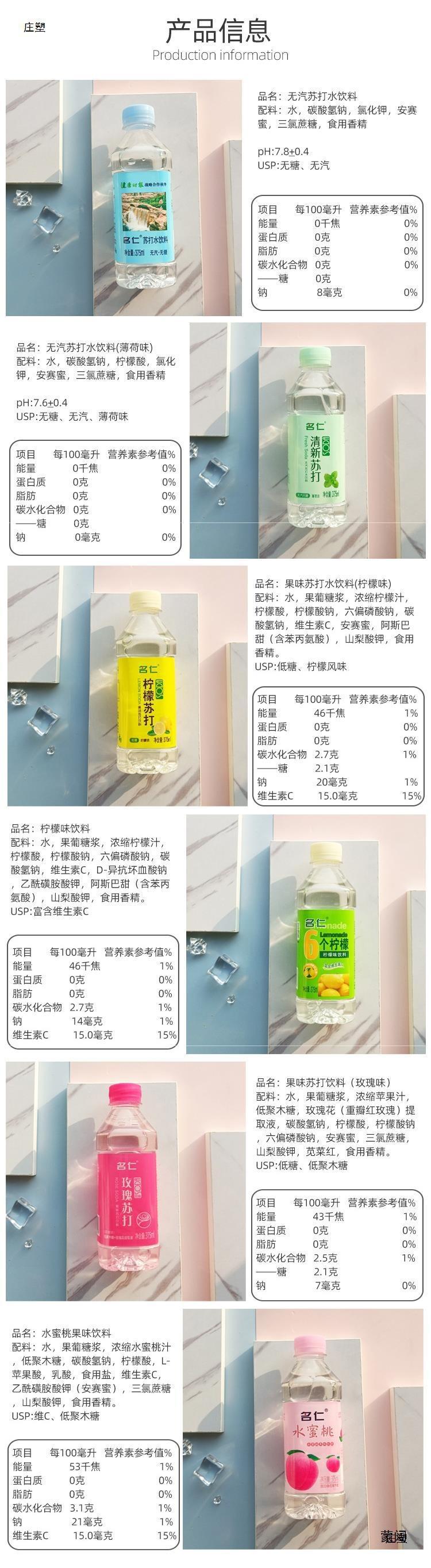 Mingren original soda water 375ml*6 bottles, Mingren lemon soda water 375ml*6 bottles, Mingren soda water 6 le...