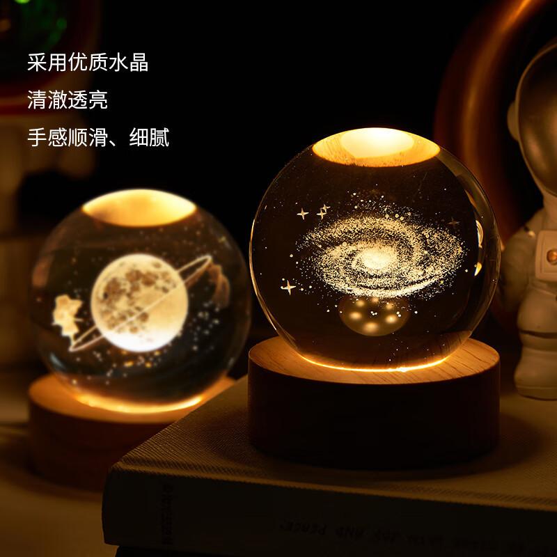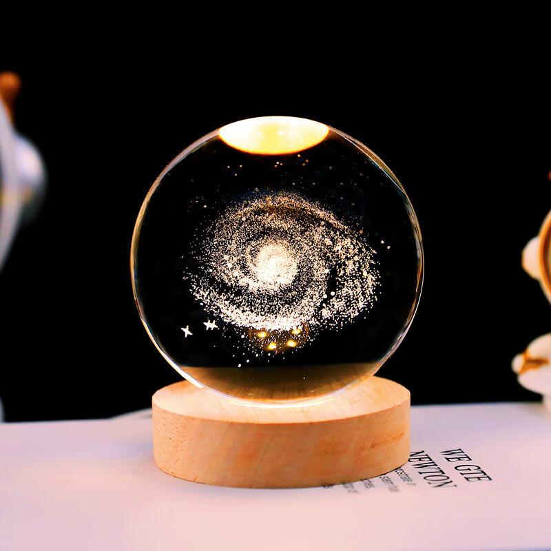 Bola de cristal luminosa de astronauta galáctico en 3D, luz nocturna interior tallada de madera, decoración de escritorio para niñas y novias, regalo de Navidad