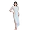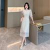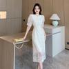 Vestido de encaje francés de tiro real para mujer verano 2023 Nuevo diseño de manga abullonada falda larga 937