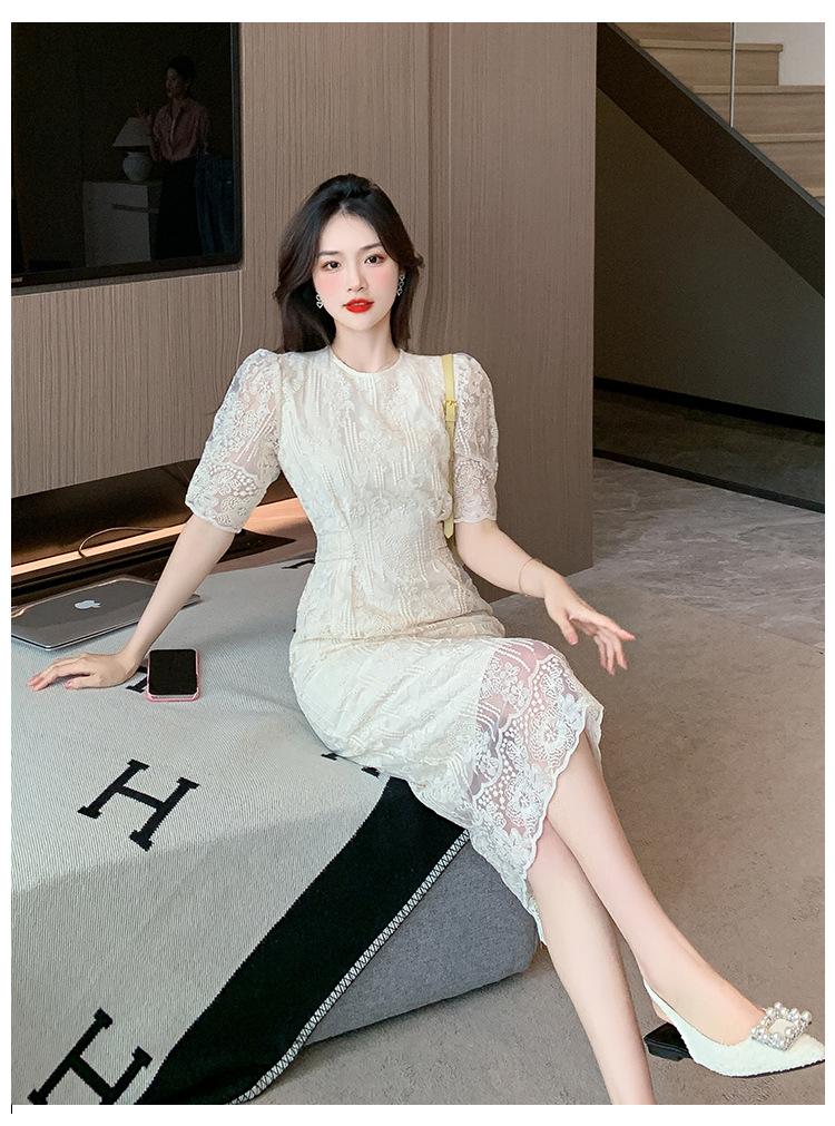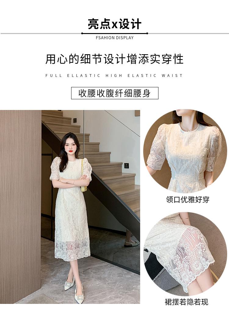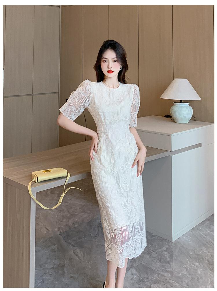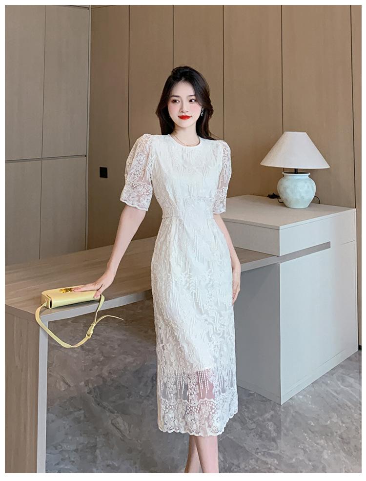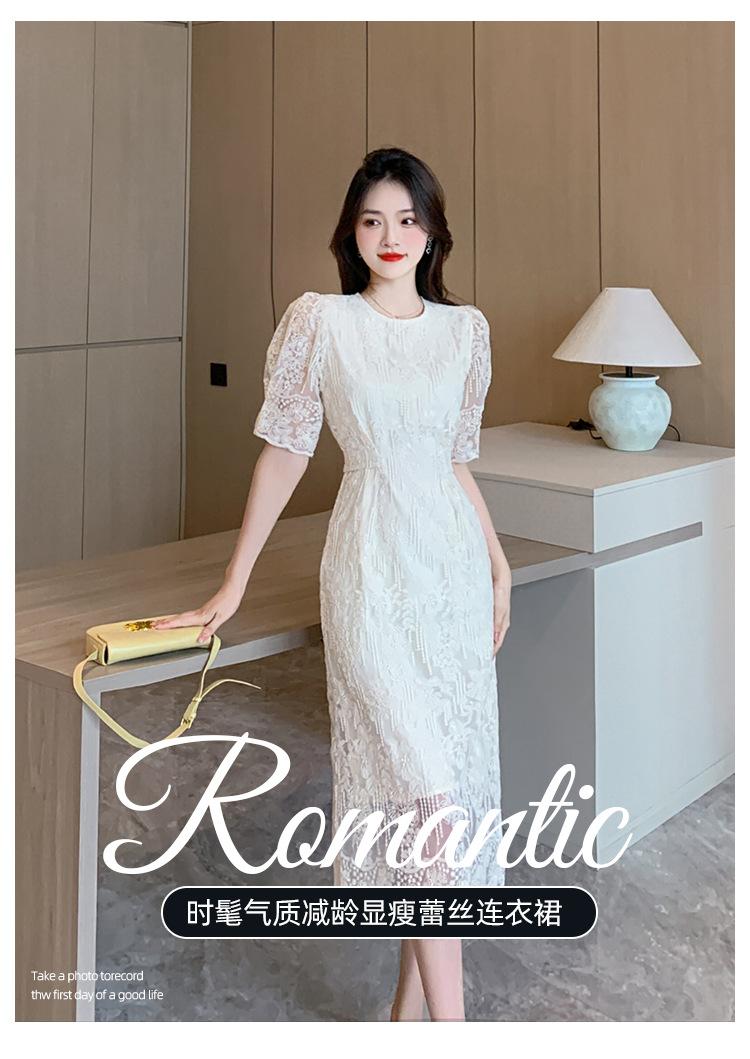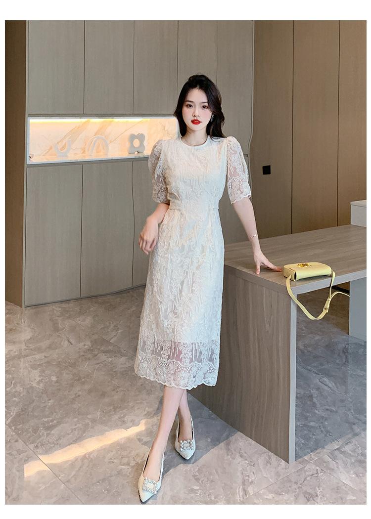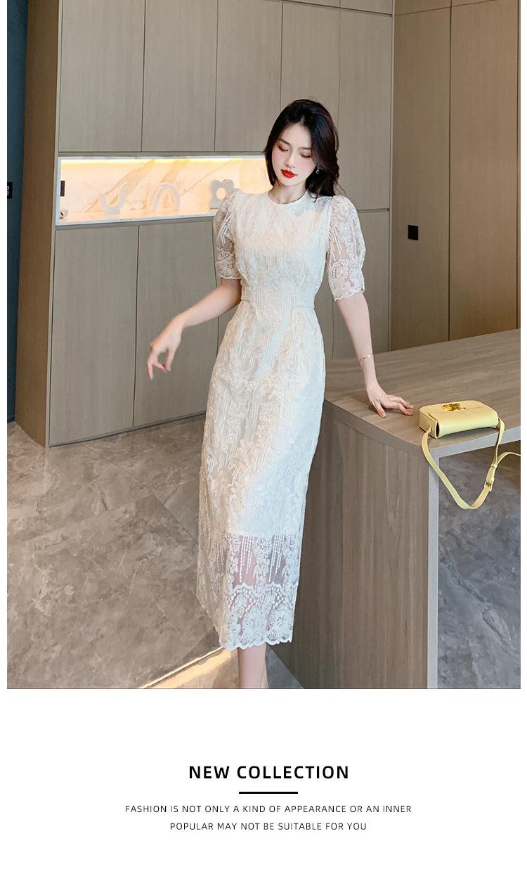Compra Vestido de encaje francés de tiro real para mujer verano 2023 Nuevo diseño de manga abullonada falda larga 937 al por mayor en Joom.pro