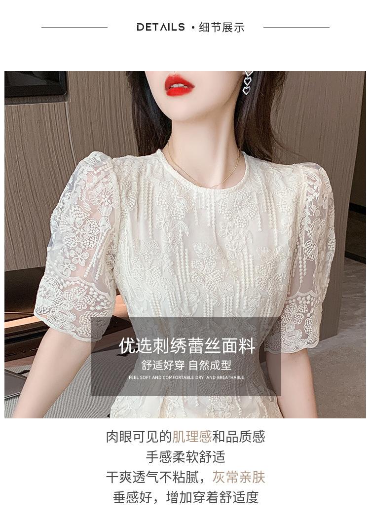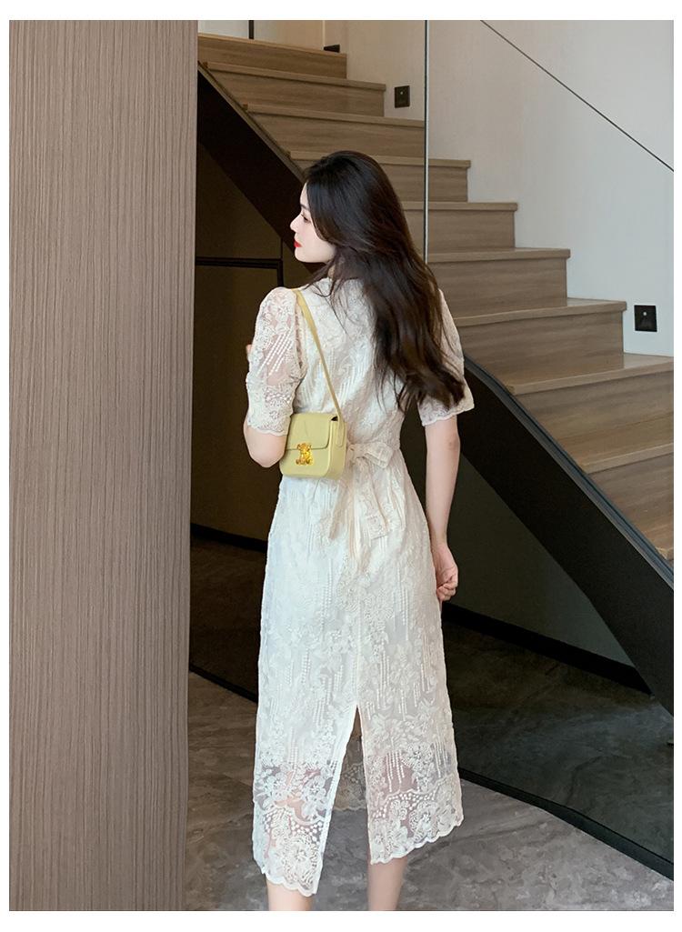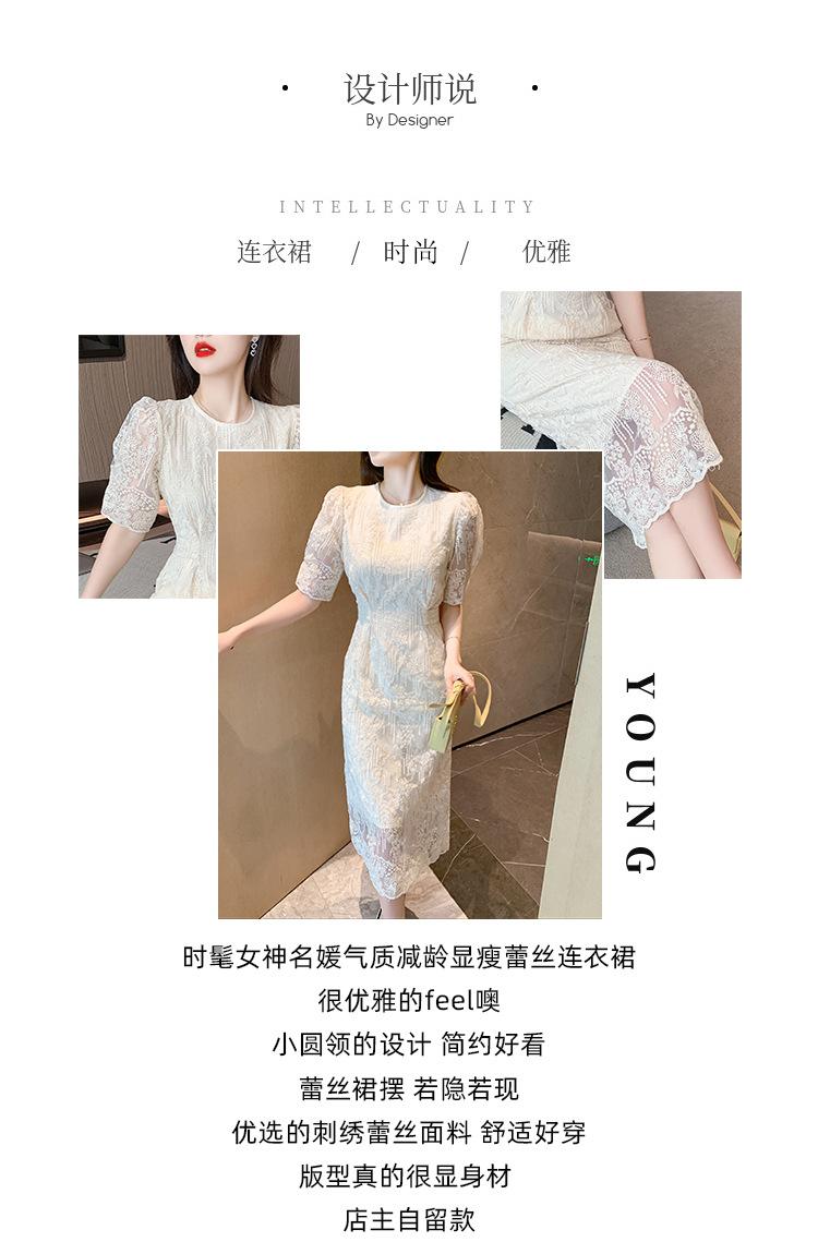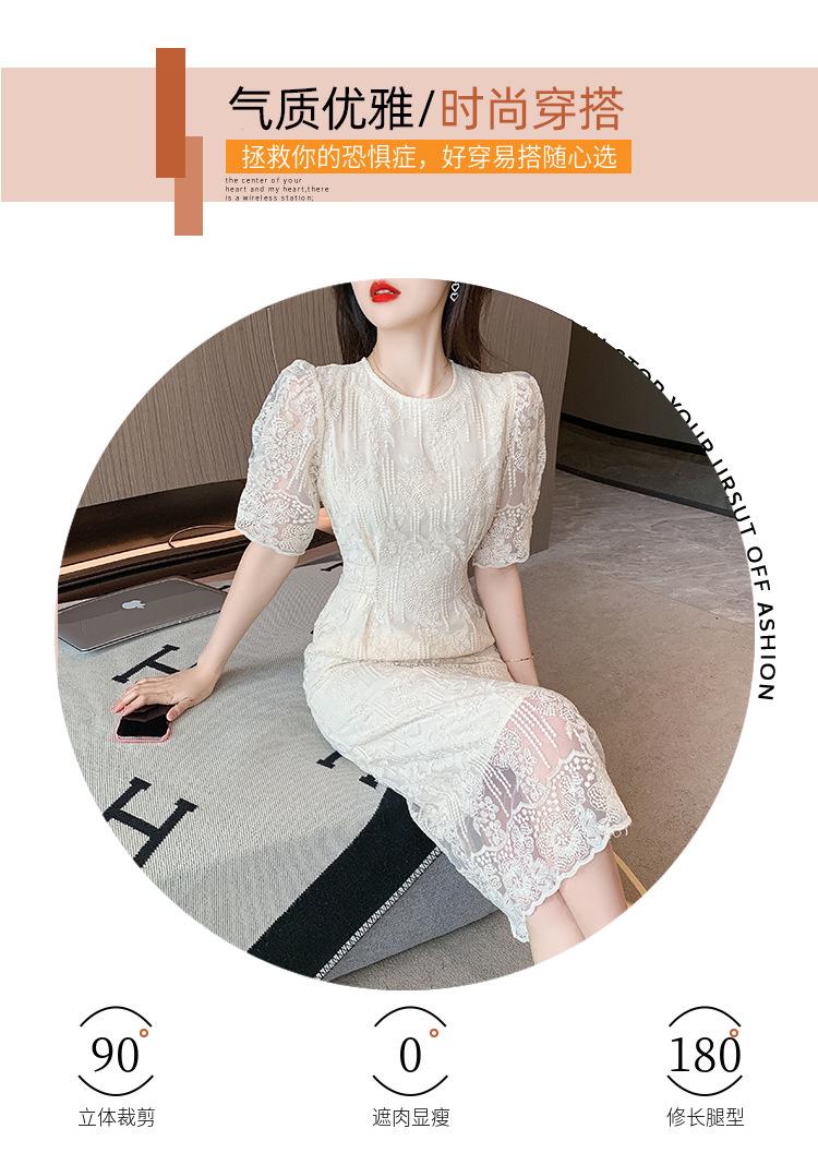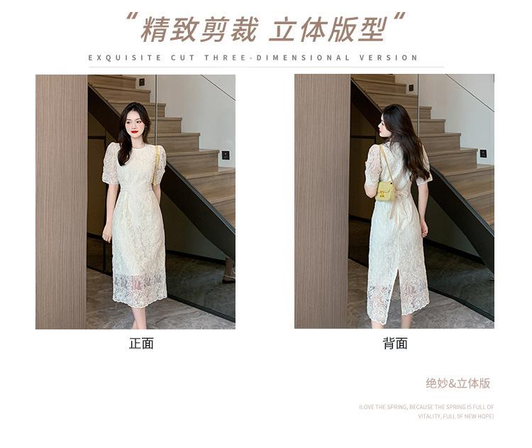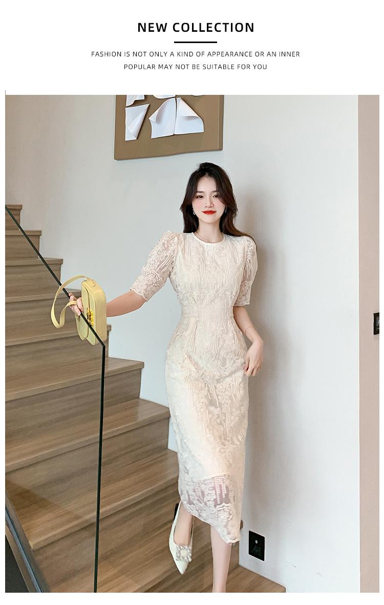 Compra Vestido de encaje francés de tiro real para mujer verano 2023 Nuevo diseño de manga abullonada falda larga 937 al por mayor en Joom.pro