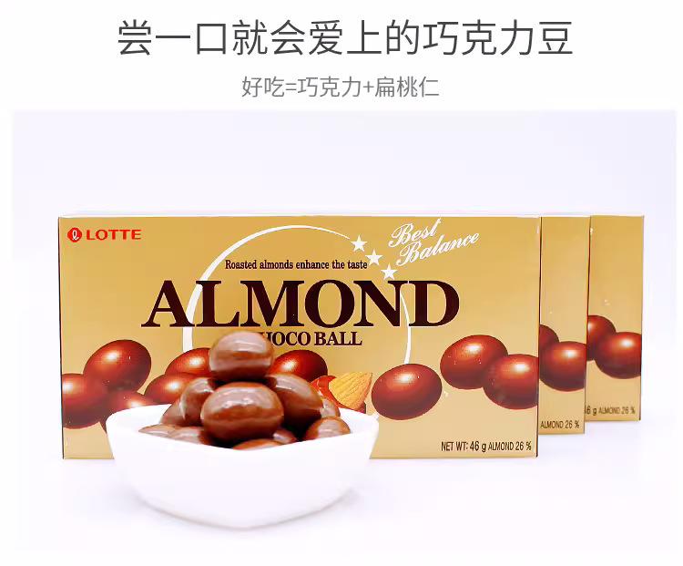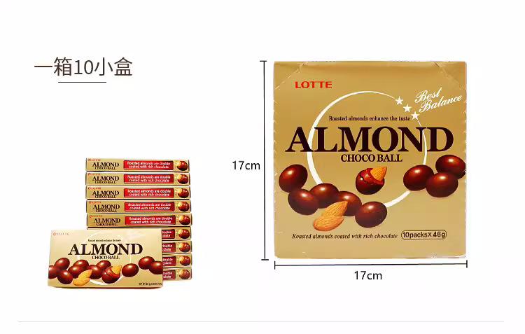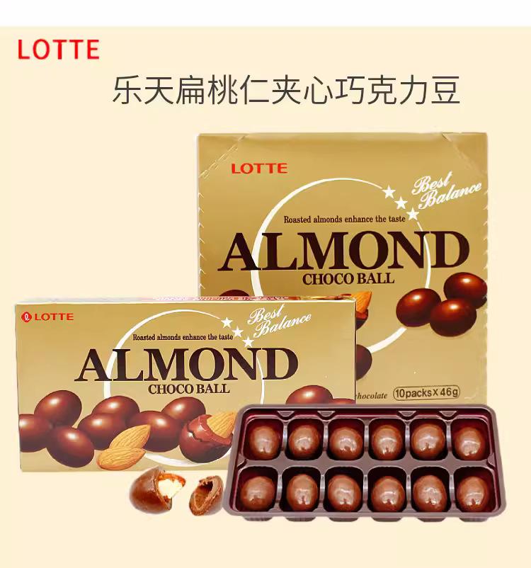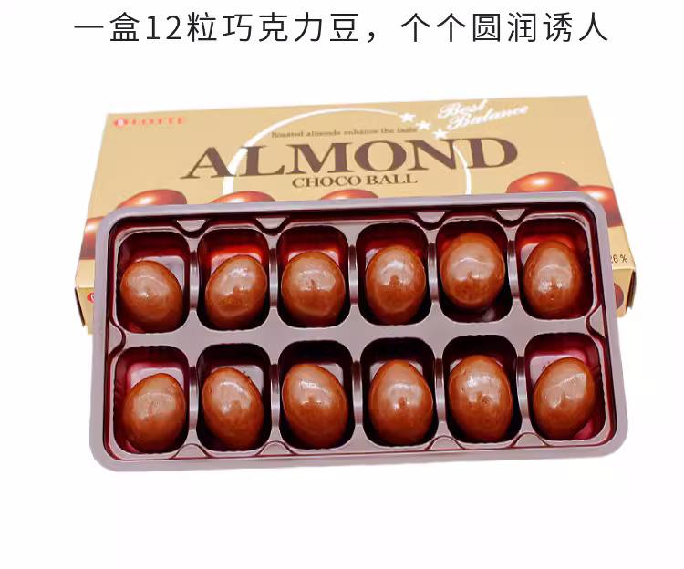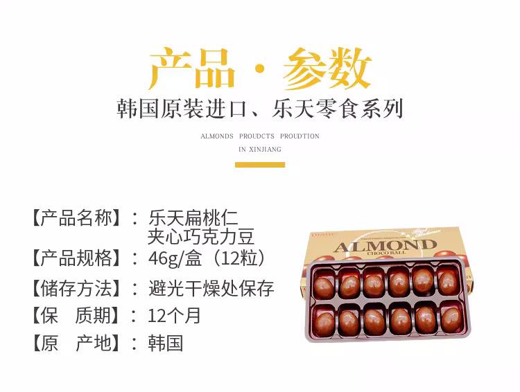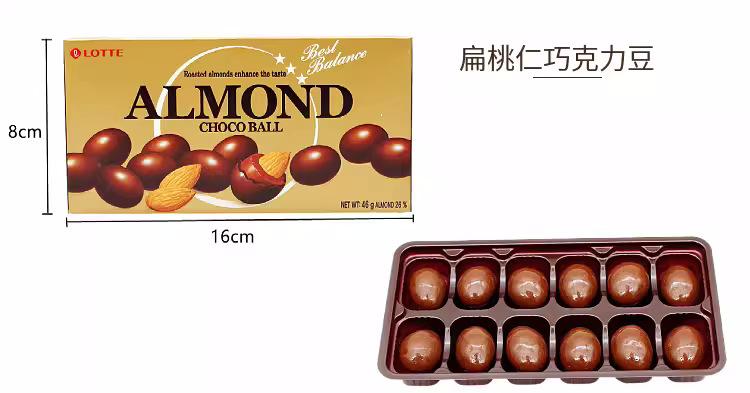 Caramelo de almendras, lentejas y chocolate Lotte de Corea del Sur (46 g) (12 cajas de regalo)