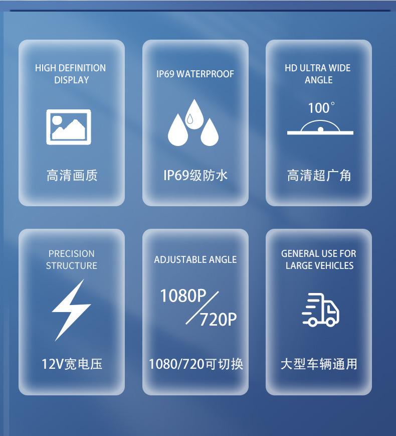 Cámara de marcha atrás universal para minibús, camión, 1080P/720P, visión nocturna HD, cámara de vigilancia para autobús con cabezal de aviación