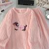 Pijama de Vellón Coral Grueso Estilo Coreano para Mujer Otoño e Invierno Cárdigan con Solapa Franela de Dibujos Animados Ropa de Casa Dulce para Niña